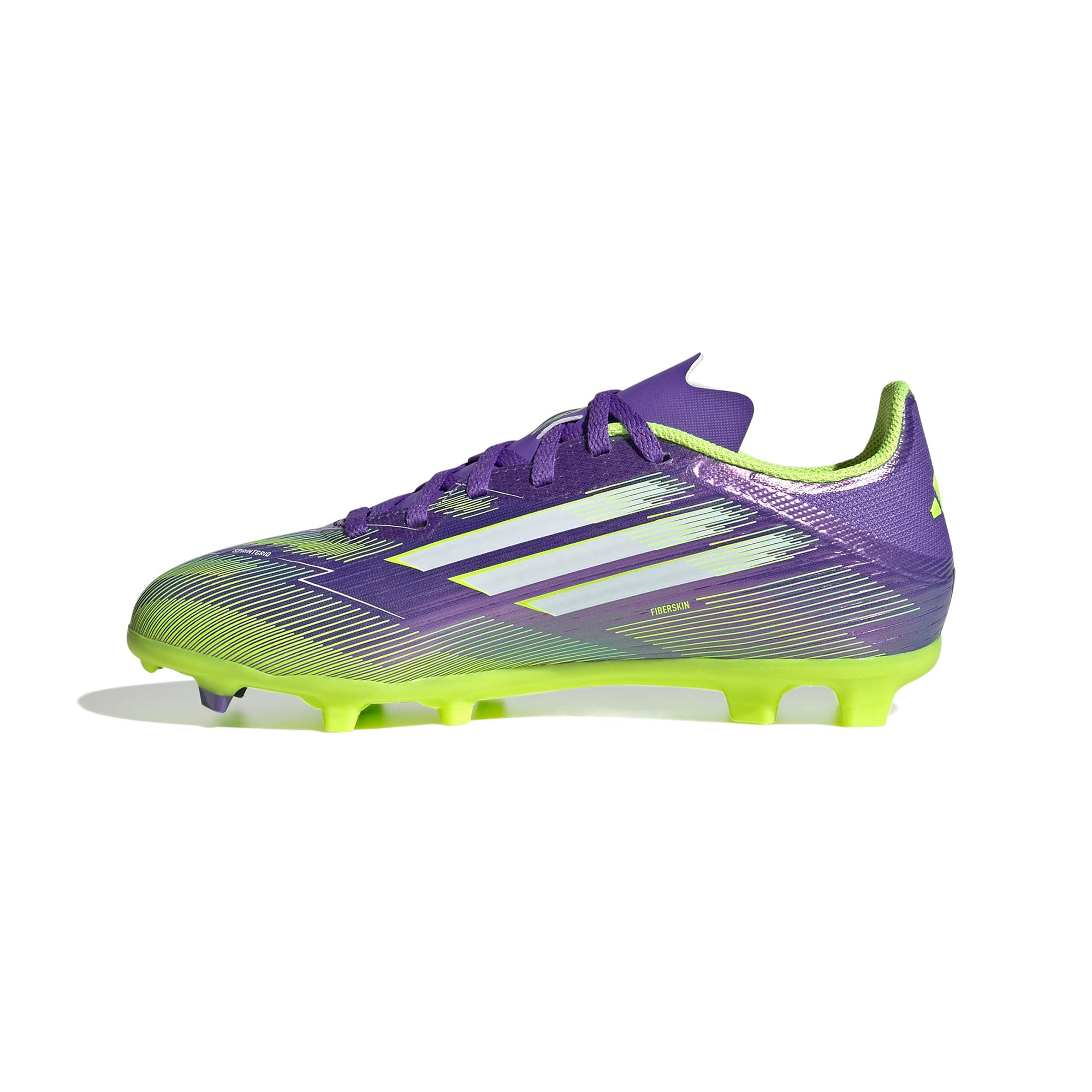 Feel the rush in adidas F50 boots engineered for speed. Standing out with an eye-catching Sprintgrid print, the Fiberskin upper on these juniors' League football boots employs a perforated tongue for cool play. A lightweight Sprintplate outsole delivers serious pace on multiple surfaces.