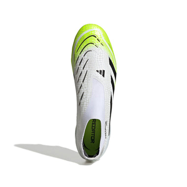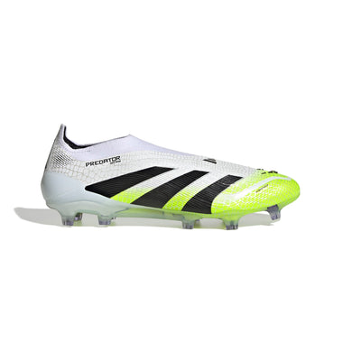 These Elite boots have a HybridTouch upper with strategically placed rubber Strikeskin fins and a laceless construction that help provide perfect contact with the football. The Controlframe 2.0 firm ground outsole and adidas PRIMEKNIT collar are designed to give you a stable stance when the goal's at your mercy.