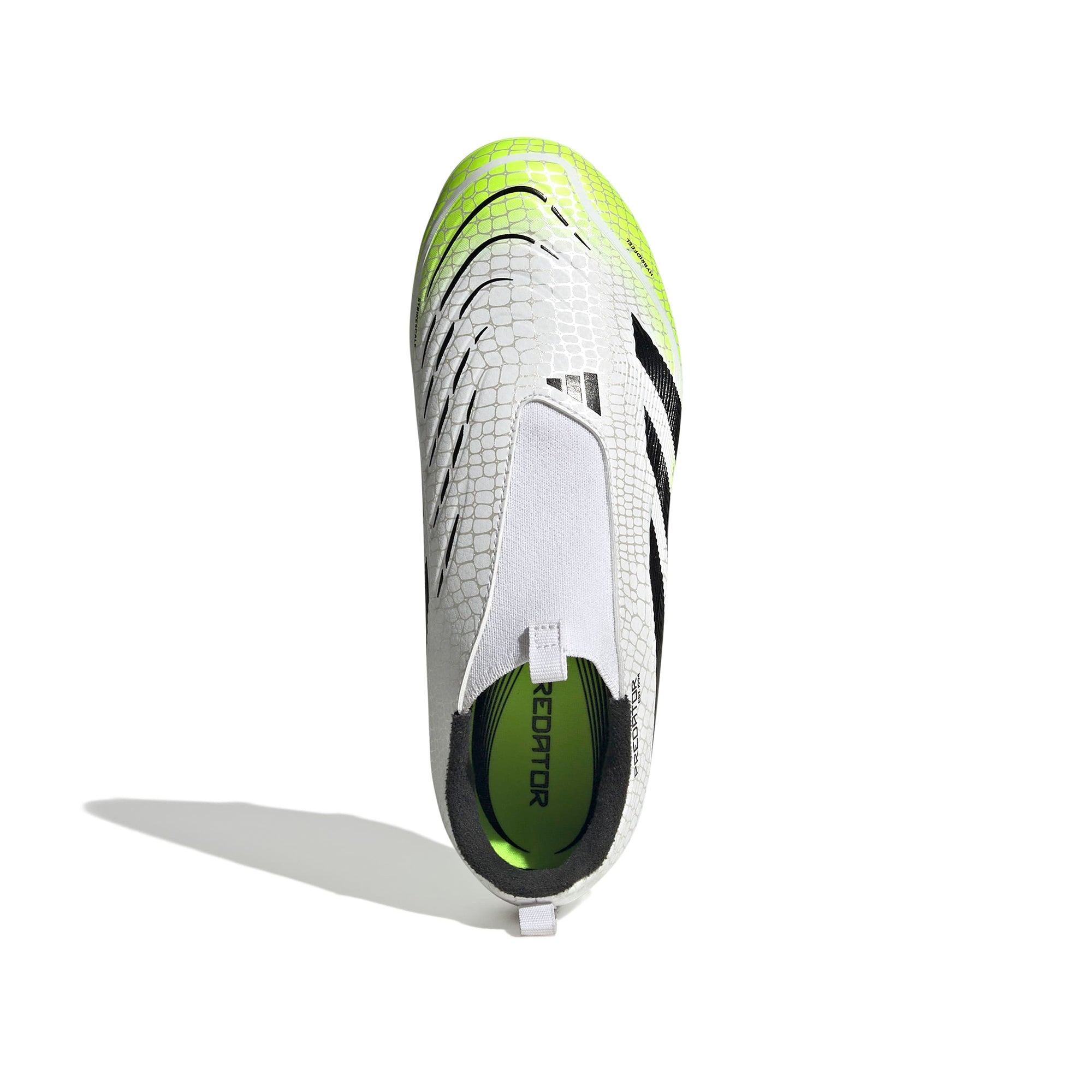 These juniors' League boots have a Hybridfeel upper that incorporates an all-over 3D texture, a laceless knit collar and grippy Strikescale fins to help you manipulate the football during strikes. A Controlplate outsole keeps you stable on firm ground and artificial grass.