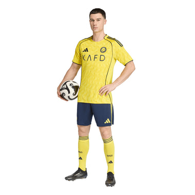 Its radiant design draws inspiration from the blazing Riyadh sun and its soft fabric and moisture-managing AEROREADY ensure fans stay comfortable while they shout their support. On the chest, a club crest shows your loyalty.