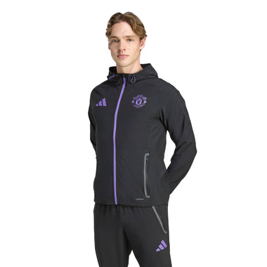 This sleek track jacket from adidas combines technical performance with eye-catching details. Its stretchy fabric and moisture-managing AEROREADY work in tandem to keep every movement comfortable. The most important of its reflective details, a printed club badge shares your football pride.