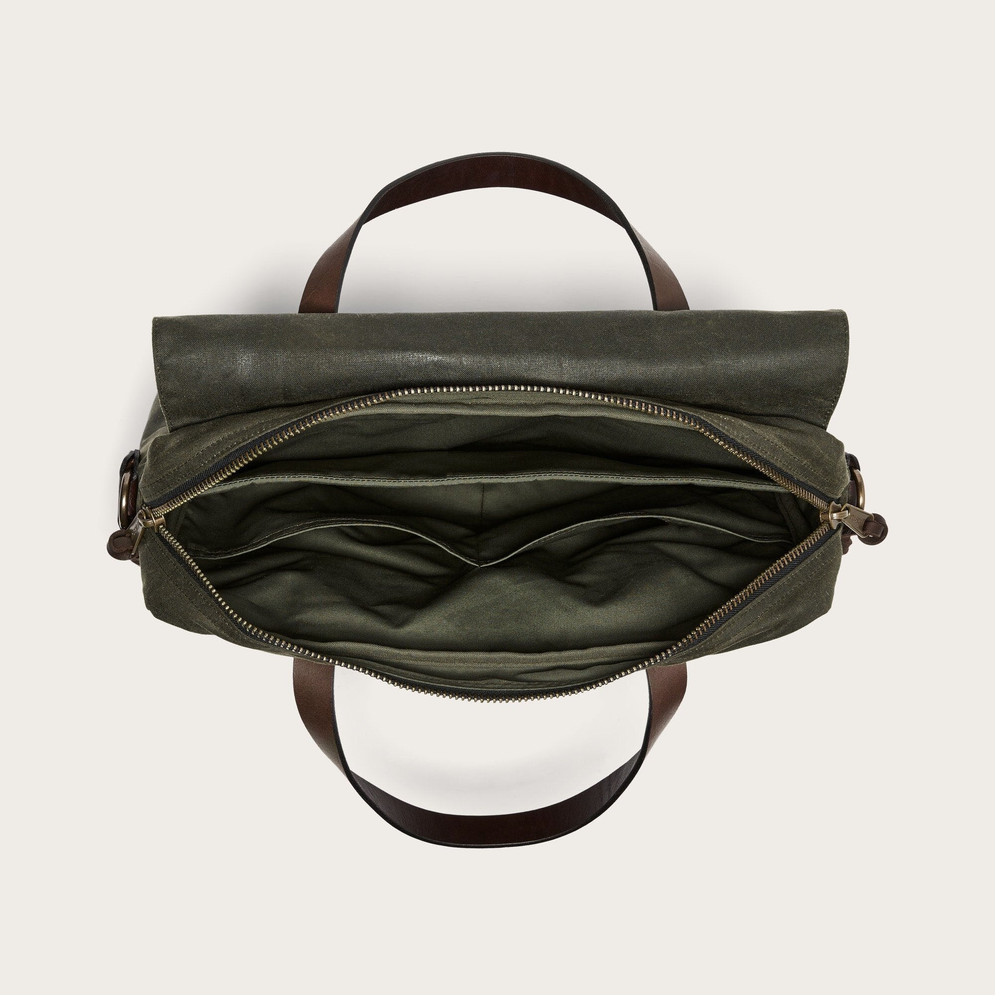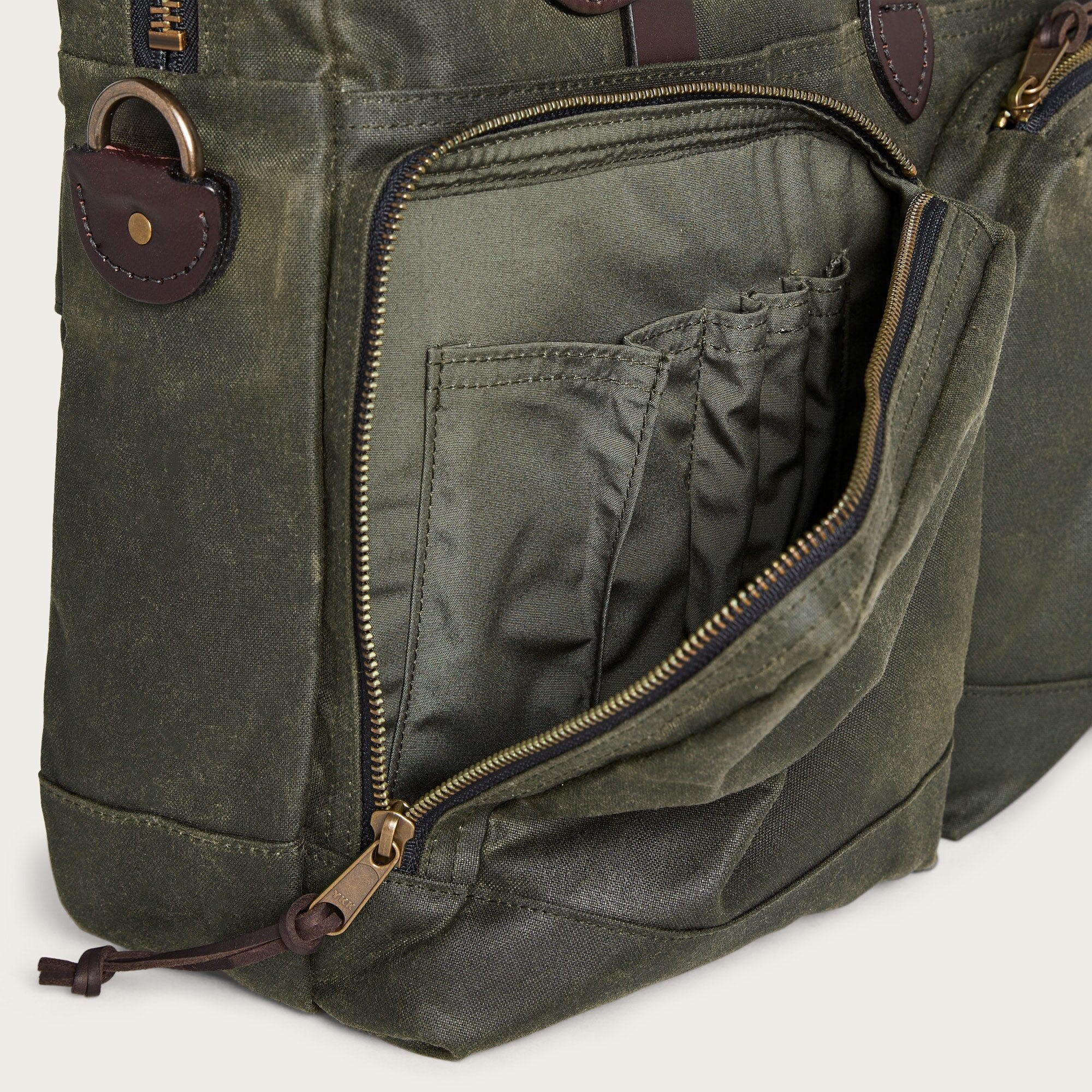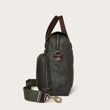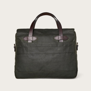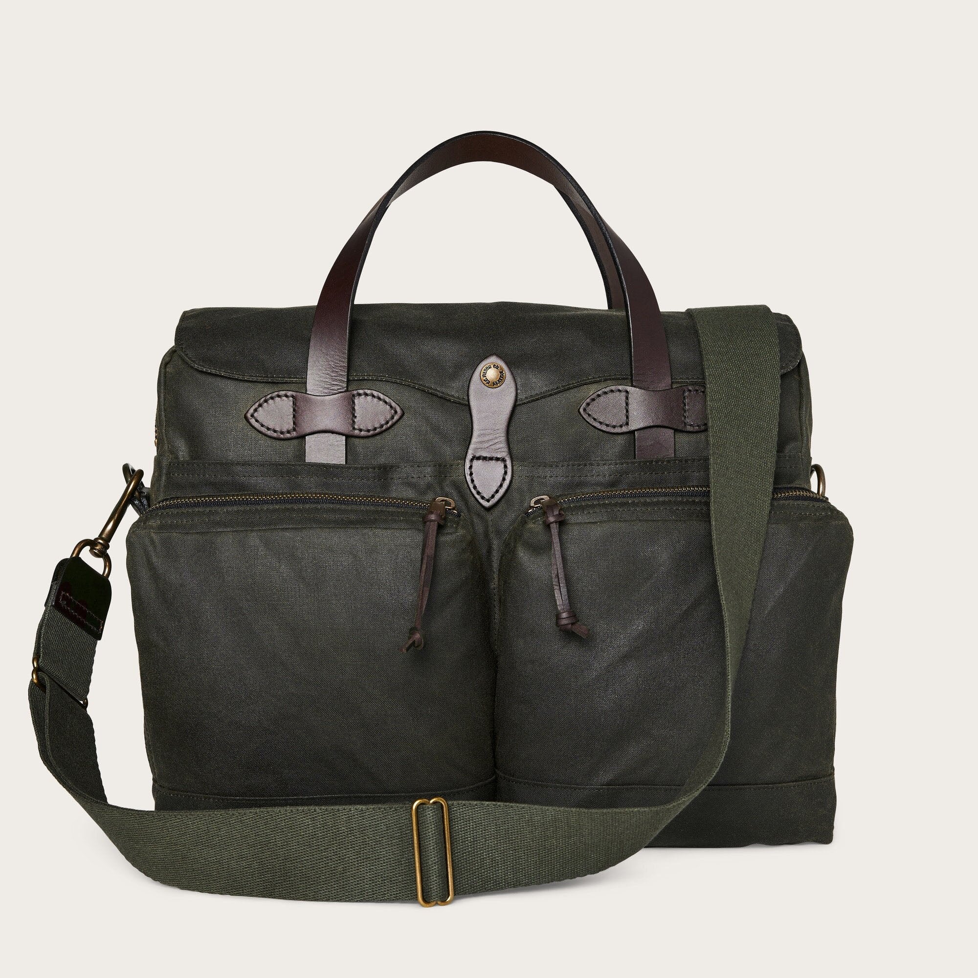 The 24-Hour Tin Cloth Briefcase blends proven, traditional materials with old-world craftsmanship in a bag that meets the requirements of the modern business traveller. Filson combined the laptop-carrying ability of the Padded Computer Bag with the sleek design of the Original Briefcase for a bag that does the job no matter where your work takes you.