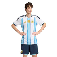 The Argentina 26 Home Authentic Long Sleeve Jersey celebrates the World Champions and football DNA of Argentina. This jersey is a tribute to the team's legacy, inspired by those used in the three World Cup victories ('78, '86, '22). Complemented by matching shorts and socks, it proudly displays the Fed year of foundation as a sign-off.
