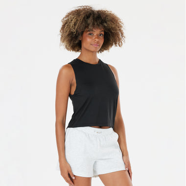 The "Pacy" model is a sporty and breathable women's sports top from Athlecia. It has a cropped cut that gives your sports or everyday outfit a casual, stylish touch. It is sleeveless and has a round neck.