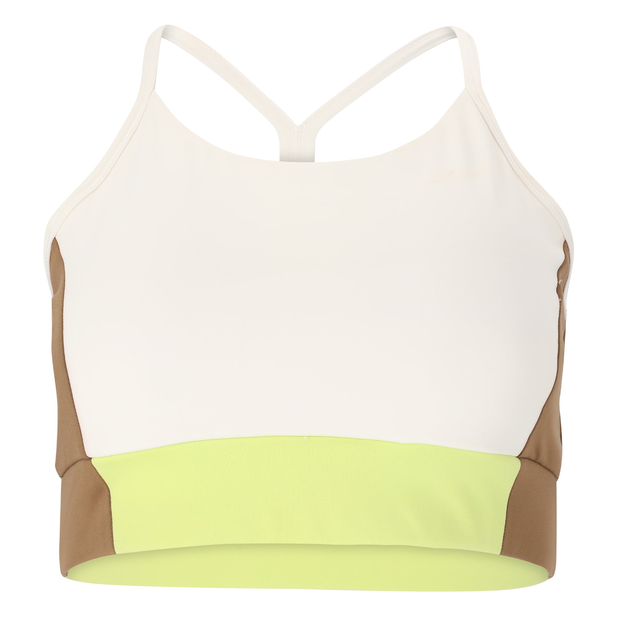 During production, 75% recycled polyester and 25% elastane were used in an environmentally friendly way. Thanks to Quick Dry technology, the sports bra dries quickly, which prevents the formation of odours and bacteria. The smart racerback design and the colour-blocking look complement this bra perfectly.