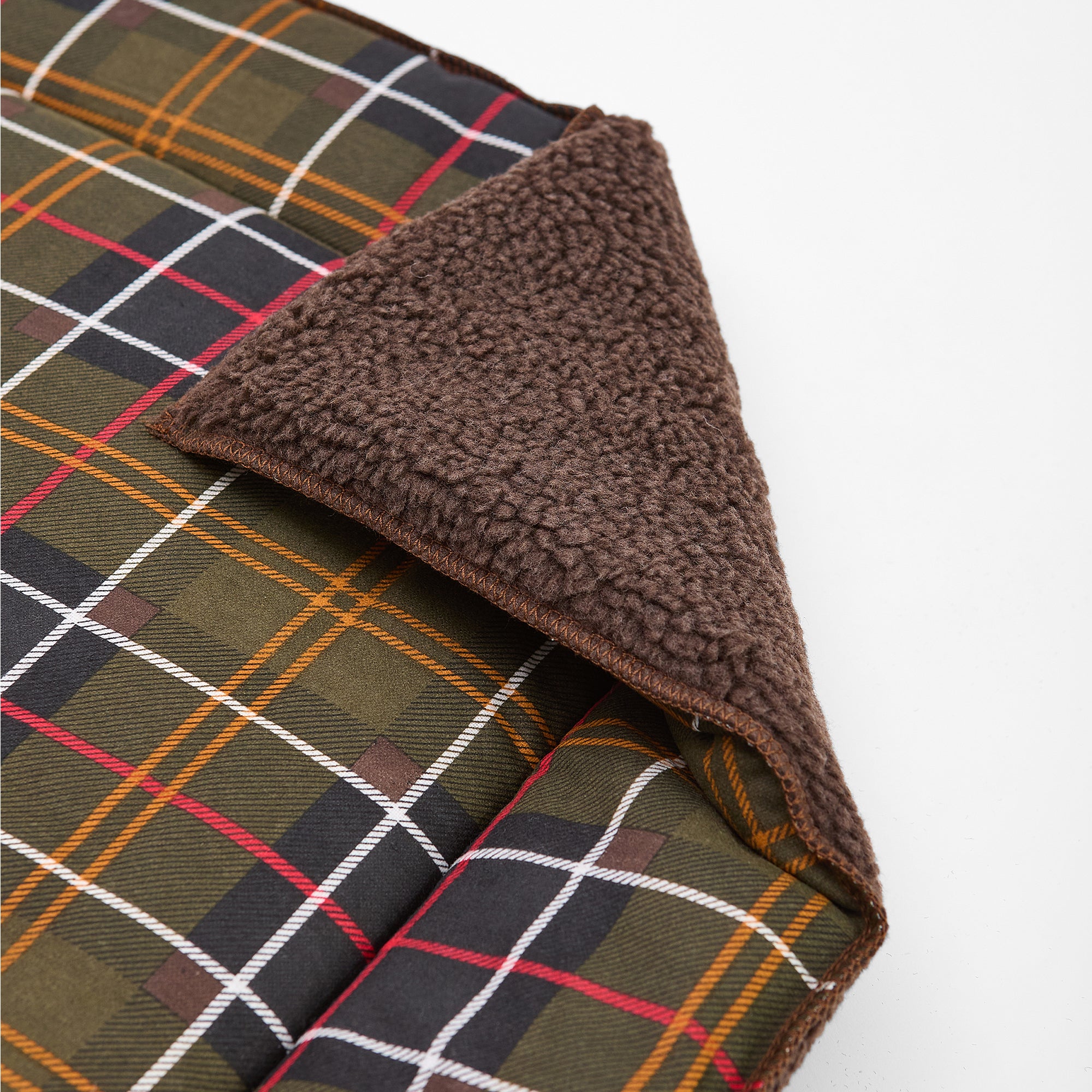 This padded mat features a brushed cotton Barbour tartan fabric to one side and fleece to the other, giving your pooch the choice of endless comfort.
