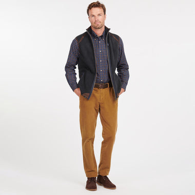 From the Country collection, the Langdale Gilet is a lightweight and versatile men's fleece bodywarmer. This warm gilet is made from super-soft fleece and styled with a zip-through front, stand collar and contrast binding to the collar edge and armholes. Internal drawcords allow the hem to be pulled in for additional protection from drafts, and the two-way zip features a Barbour-branded ring pull and a subtle flag label to the seam. Practical for use all year round, its perfect for layering under a jacket for extra insulation and can also be simply thrown over a shirt as an outer layer on mild days.