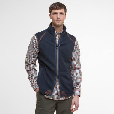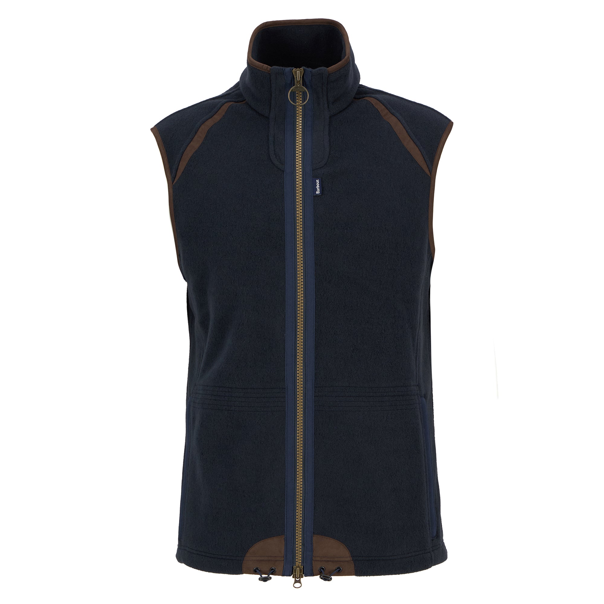 This warm gilet is made from super-soft fleece and styled with a zip-through front, stand collar and contrast binding to the collar edge and armholes. Internal drawcords allow the hem to be pulled in for additional protection from drafts, and the two-way zip features a Barbour branded ring pull and a subtle flag label to the seam.