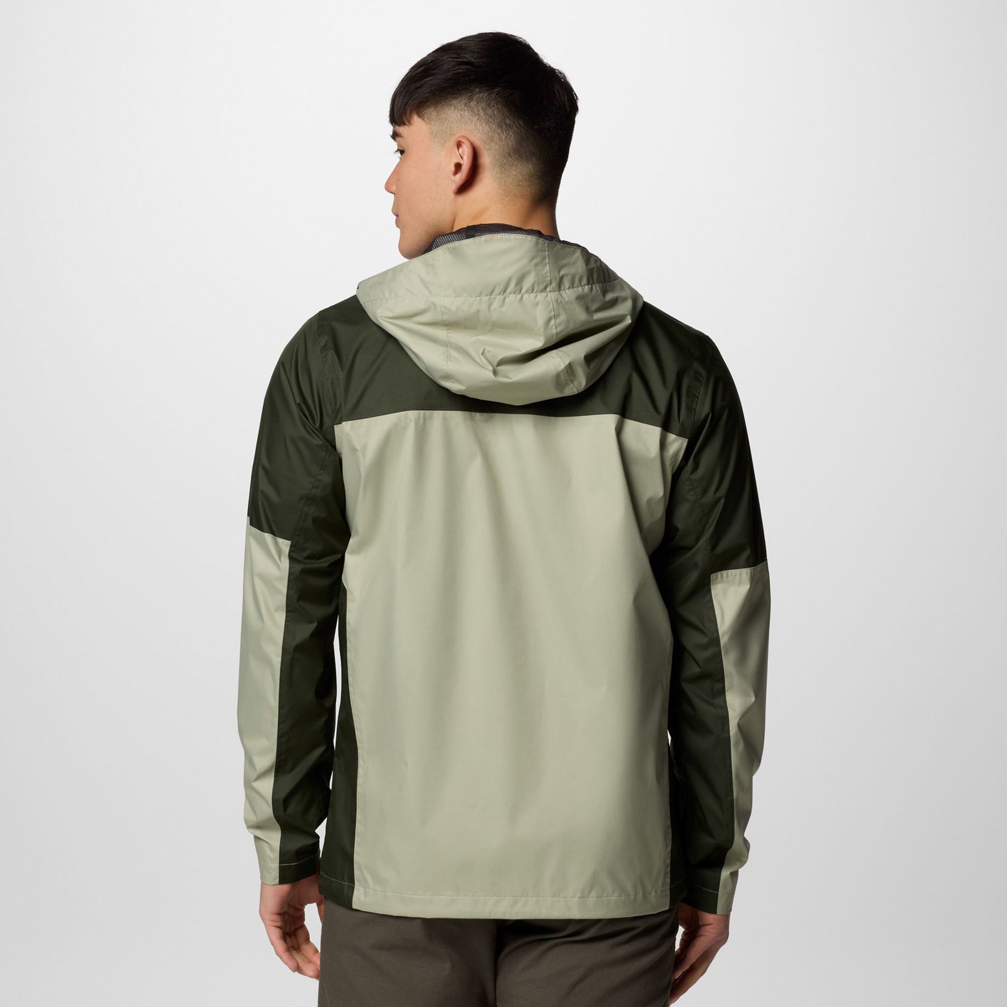 The hooded design is finished with adjustable details for a personalised fit and can be packed away into its pocket when the weather clears.
