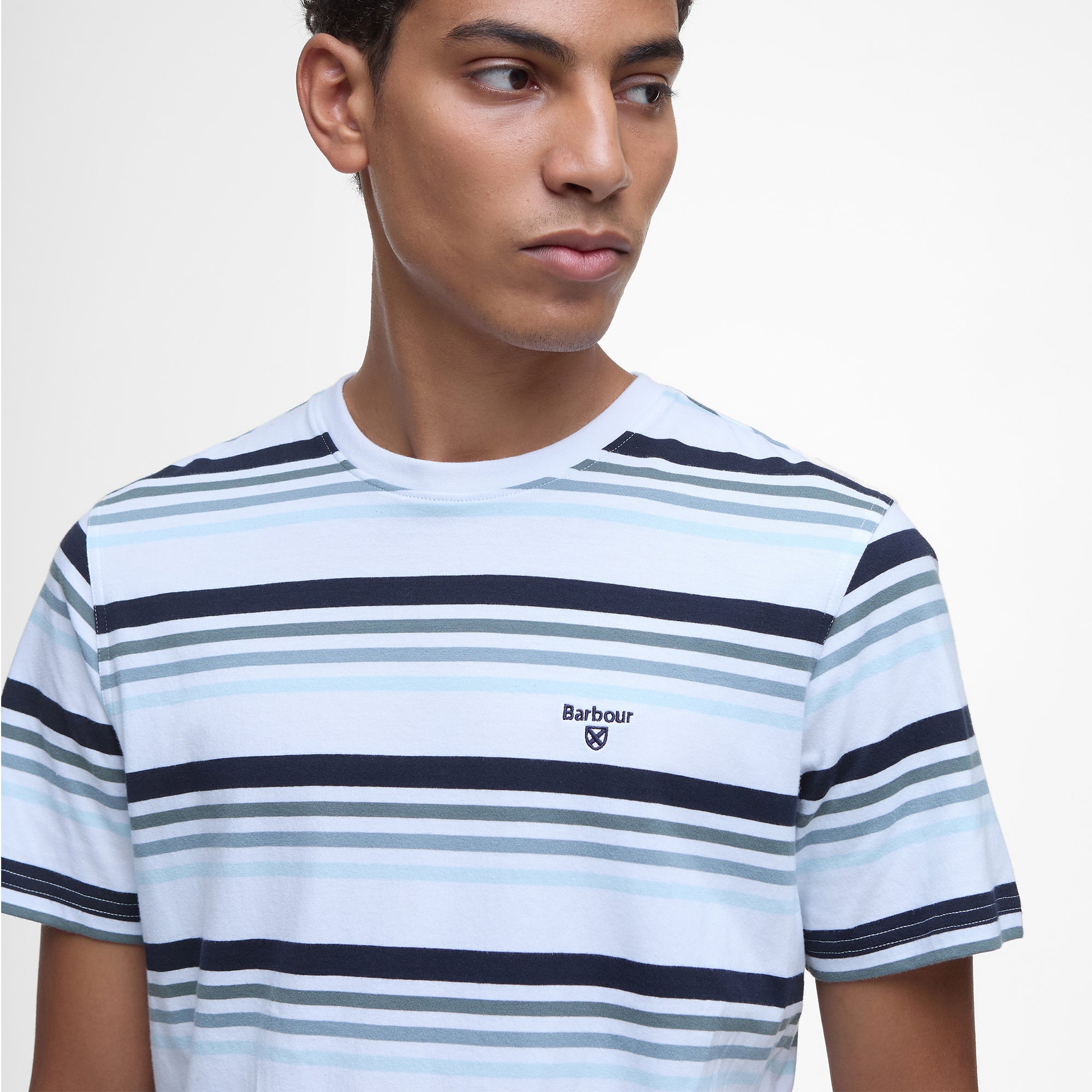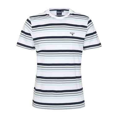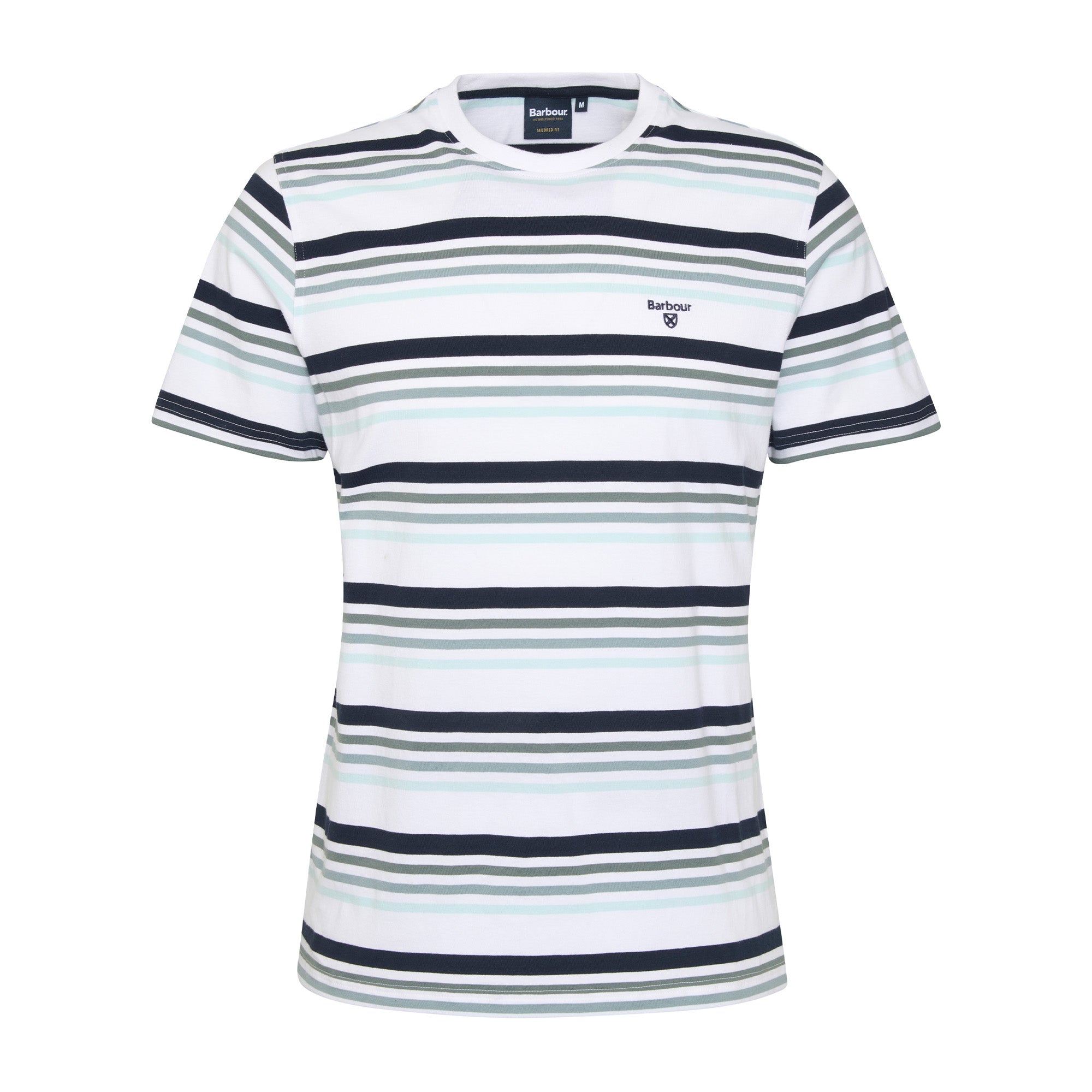 Barbour Core Essentials multi coloured stripe T-Shirt, in seasonal colours with Barbour and Shield embroidery.
