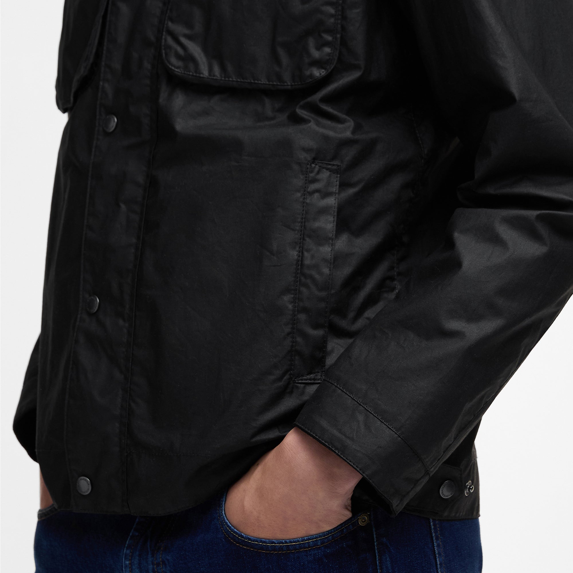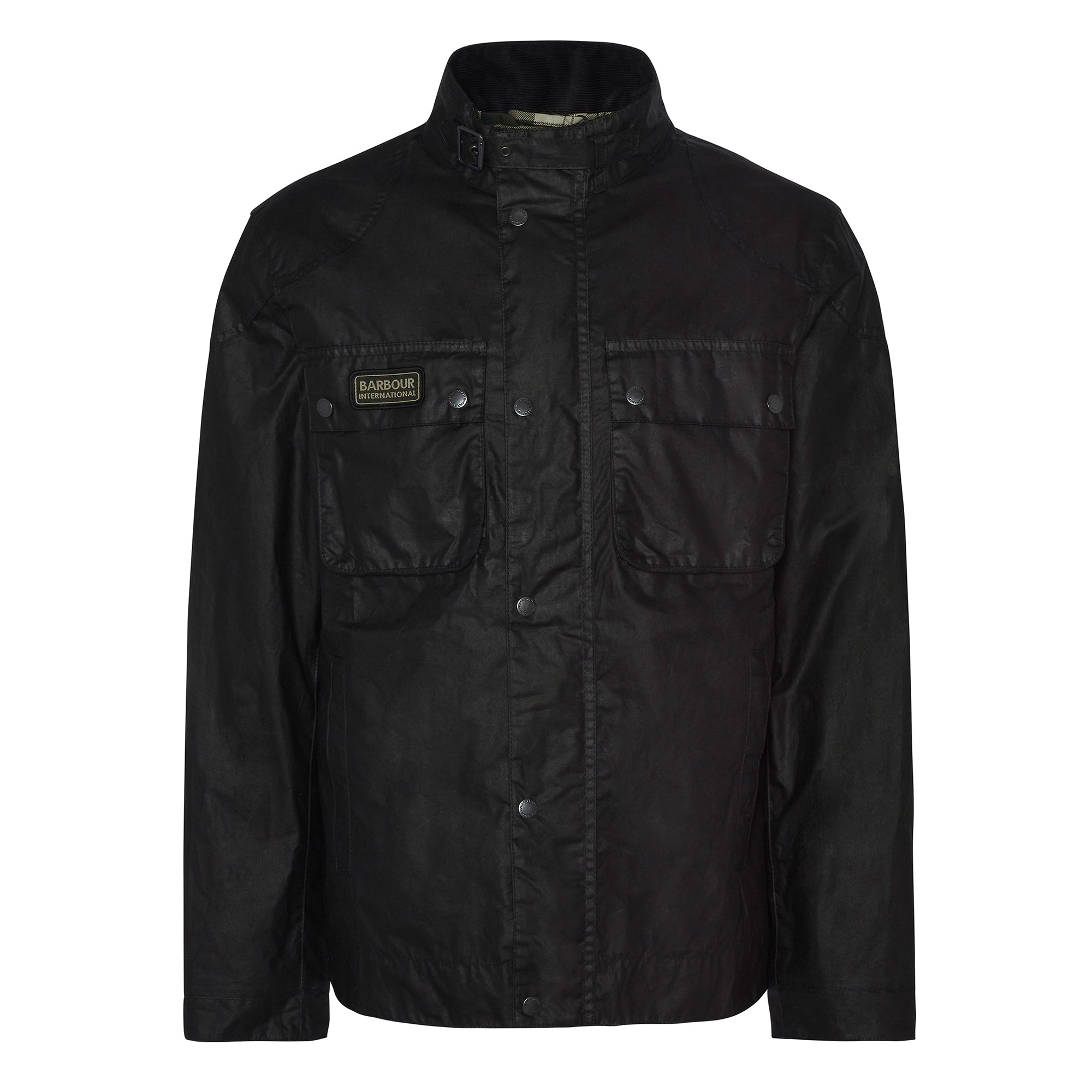 • Barbour International black and old gold woven badge to right chest pocket flap.