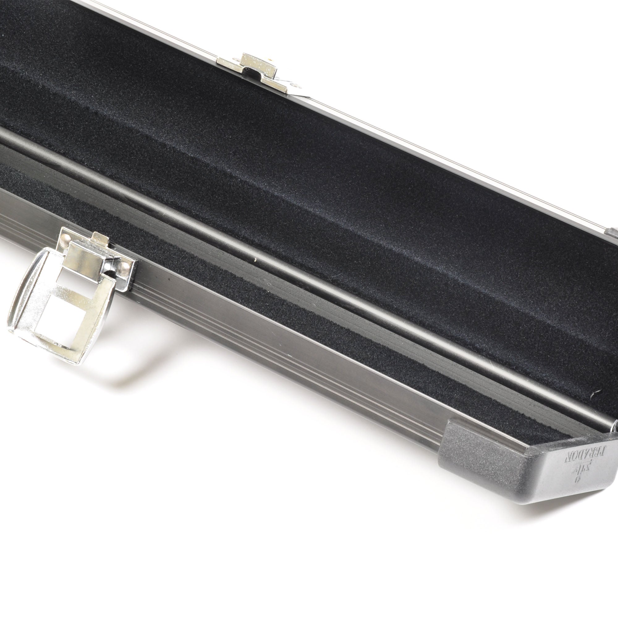 This aluminium construction case offers maximum protection for your cue. The hinge is an integral part of the shape of the case making it extremely robust. The high quality chrome catches also lock and are supplied with two keys. The interior is black flocked foam to hold the cue securely in place.
