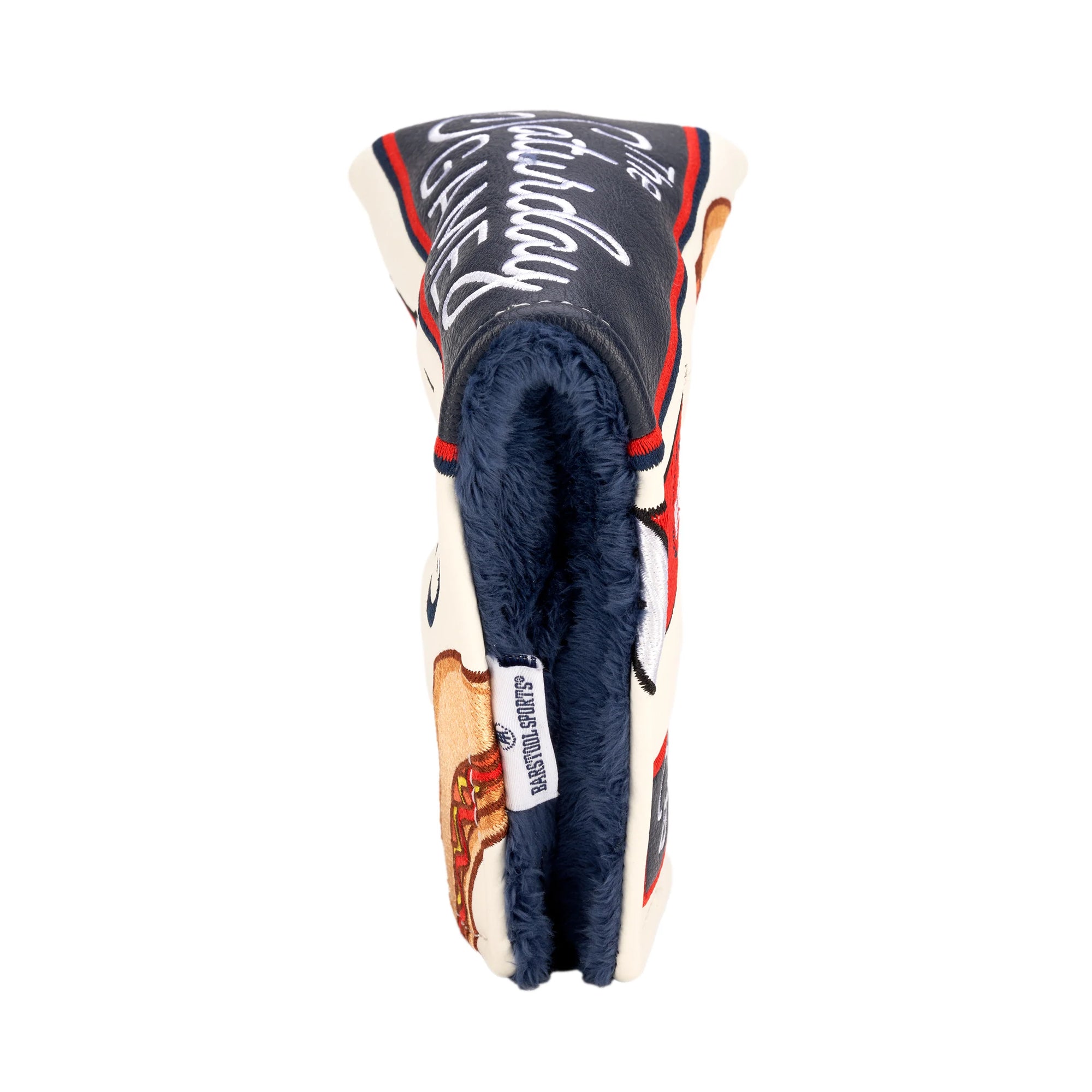 Elevate your golf bag with a Custom Blade Putter Headcover from the Barstool Golf Collection. CMC Golf Headcovers are uniquely designed in-house, and combine meticulous craftsmanship with a plush inner lining to protect your investment. Add a touch of personality and enhance your golf game in style with the Barstool Sports "Saturday Game" Blade Cover.