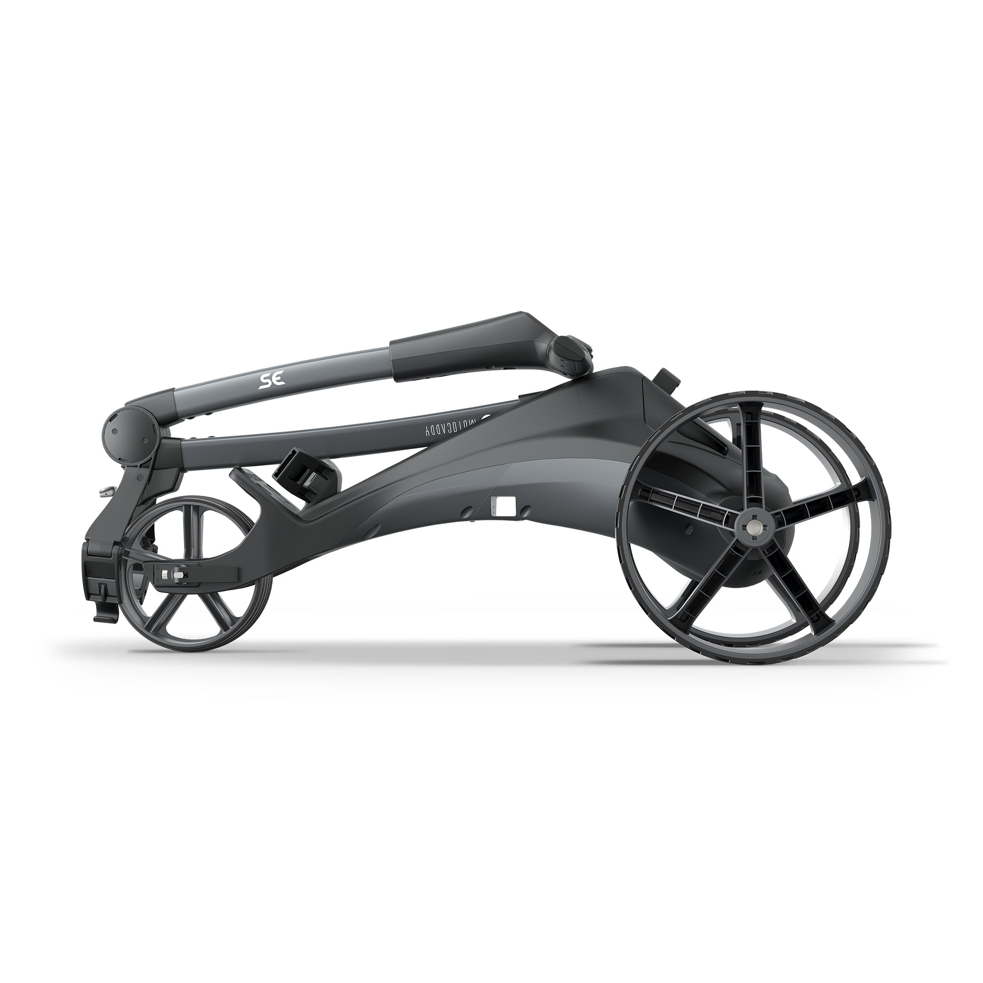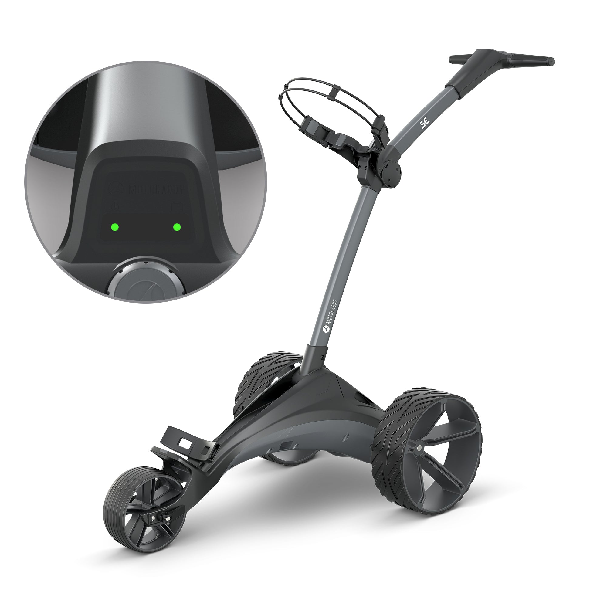 Delivering trusted Motocaddy design, performance, and reliability with outstanding value, the SE features sleek automotive-inspired styling and is powered by a new lightweight yet powerful CLICK ‘N’ CONNECT® cable-free lithium battery. This innovative battery system includes patented autodisconnect technology that automatically switches the trolley off when folded, along with a convenient pop-up charging port for simple on-board charging.