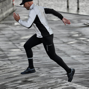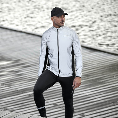 The breathable and lightweight material has the best properties for a sweaty workout. The highly reflective material always ensures top visibility and safety in the dark. The jacket is perforated on the back with fine ventilation holes and thus ensures maximum breathability. The material is water and wind repellent. The trendy design gives you a dynamic and cool look. The jacket is also equipped with a high-closing collar.