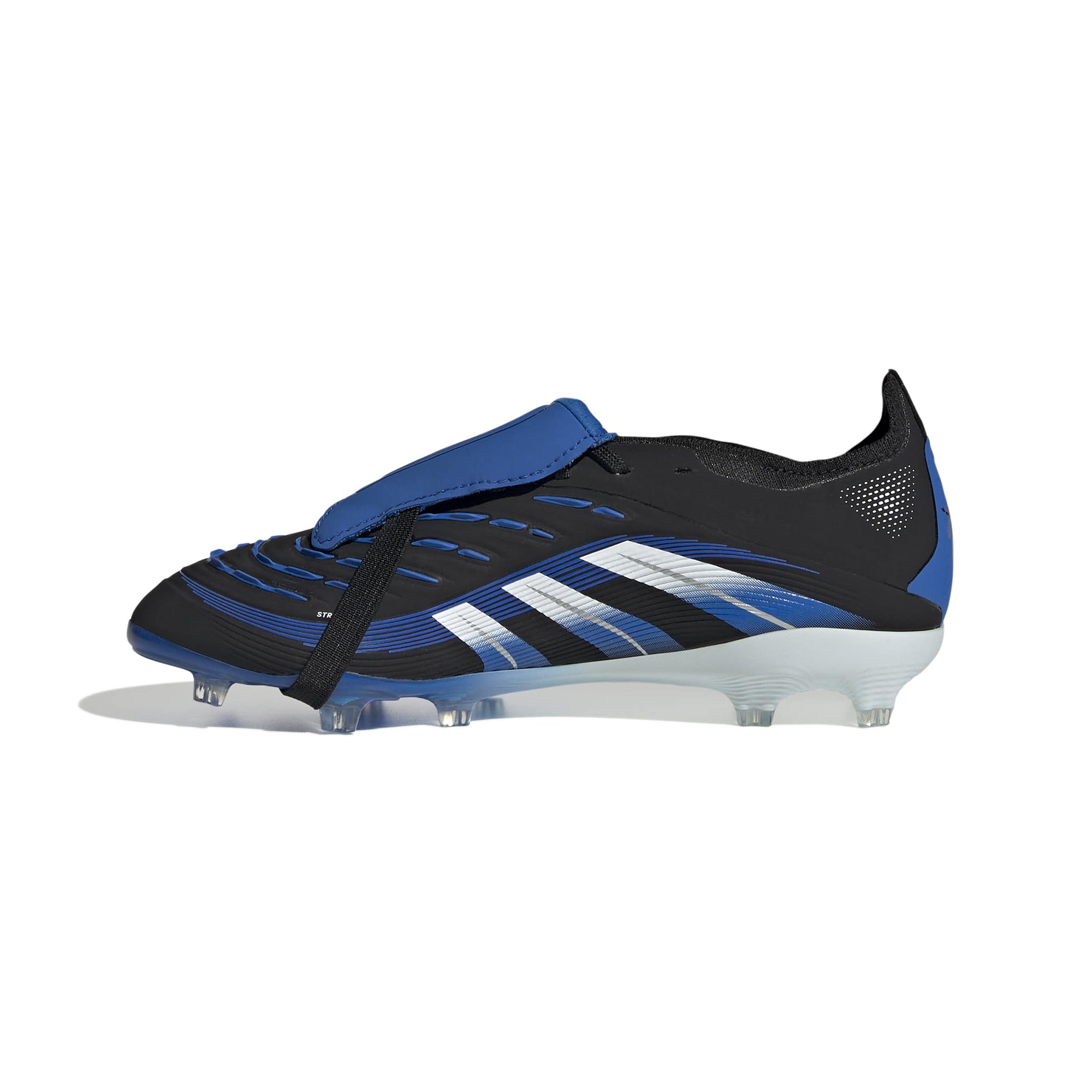 These juniors' Elite boots have a HybridTouch upper with a fold-over tongue and rubber Strikeskin fins that help provide perfect contact with the ball. The Controlframe 2.0 firm ground outsole and adidas PRIMEKNIT collar are designed to give you a stable stance. Jude Bellingham details show you back football royalty.