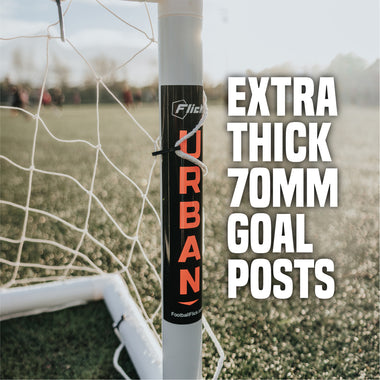 The Football Flick Urban Mini Goal features ultra high impact uPVC 70mm posts and frame to withstand the strongest and most powerful strikes.