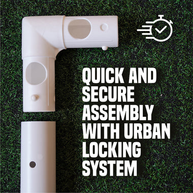 Used by schools, football clubs and in back gardens, the mini goals are perfect for any size of space available. Its reinforced corners are over 40% thicker than other goals creating lightweight but highly robust corners. The unique Urban Locking System is one of the only pre-installed locking systems available for uPVC goals, saving you assembly and disassembly time, as well as providing ultimate rigidity.