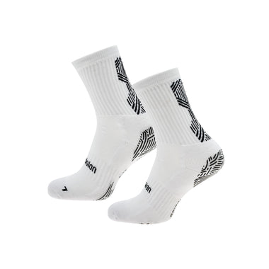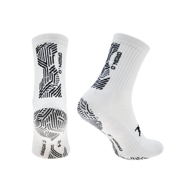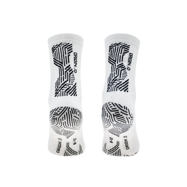 Gain the edge with white Precision Origin.0 Grip socks. Designed to grip your feet to the sole of your boots and trainers. The grip aids in acceleration, deceleration, change of direction in any sport. Superior silicone anti slip grip with dual grip inside of the sock to ‘lock in’ resistance for maximum gripping action. Origin.O are perfect football grip socks and can be used with our range of Precision football sock sleeves.