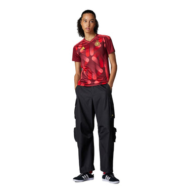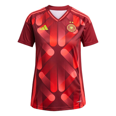 Clad in bold graphics inspired by the nation's vibrant street art scene, this adidas away jersey is built to keep fans comfortable. AEROREADY manages moisture and soft interlock fabric makes for easy movement. Standing out in bright yellow, a sewn-on team badge and spray paint-effect "Deutschland" add the finishing touches.