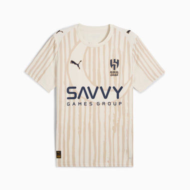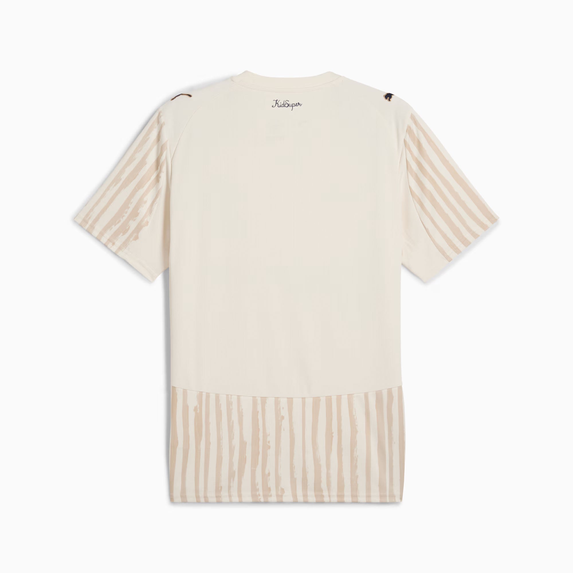 Part of the PUMA x KIDSUPER collection, this Al-Hilal Home Kit takes its cue from the club’s name – meaning the crescent moon in Arabic. The Brooklyn designer brings that symbol to life in tonal blues, with a glowing lunar graphic that reflects the quiet confidence of a team known across Asia as The Boss. A shirt for the dreamers, lit by the night sky, charting a path from Saudi Arabia to San Francisco – because greatness never stays in one place.