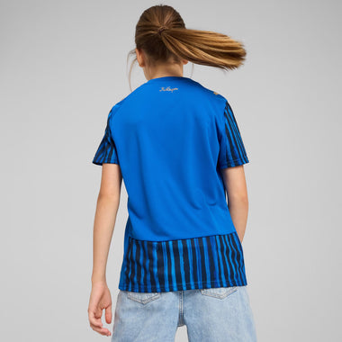 Part of the PUMA x KIDSUPER collection, this Al-Hilal Home Kit takes its cue from the club’s name – meaning the crescent moon in Arabic. The Brooklyn designer brings that symbol to life in tonal blues, with a glowing lunar graphic that reflects the quiet confidence of a team known across Asia as The Boss. A shirt for the dreamers, lit by the night sky, charting a path from Saudi Arabia to San Francisco – because greatness never stays in one place.