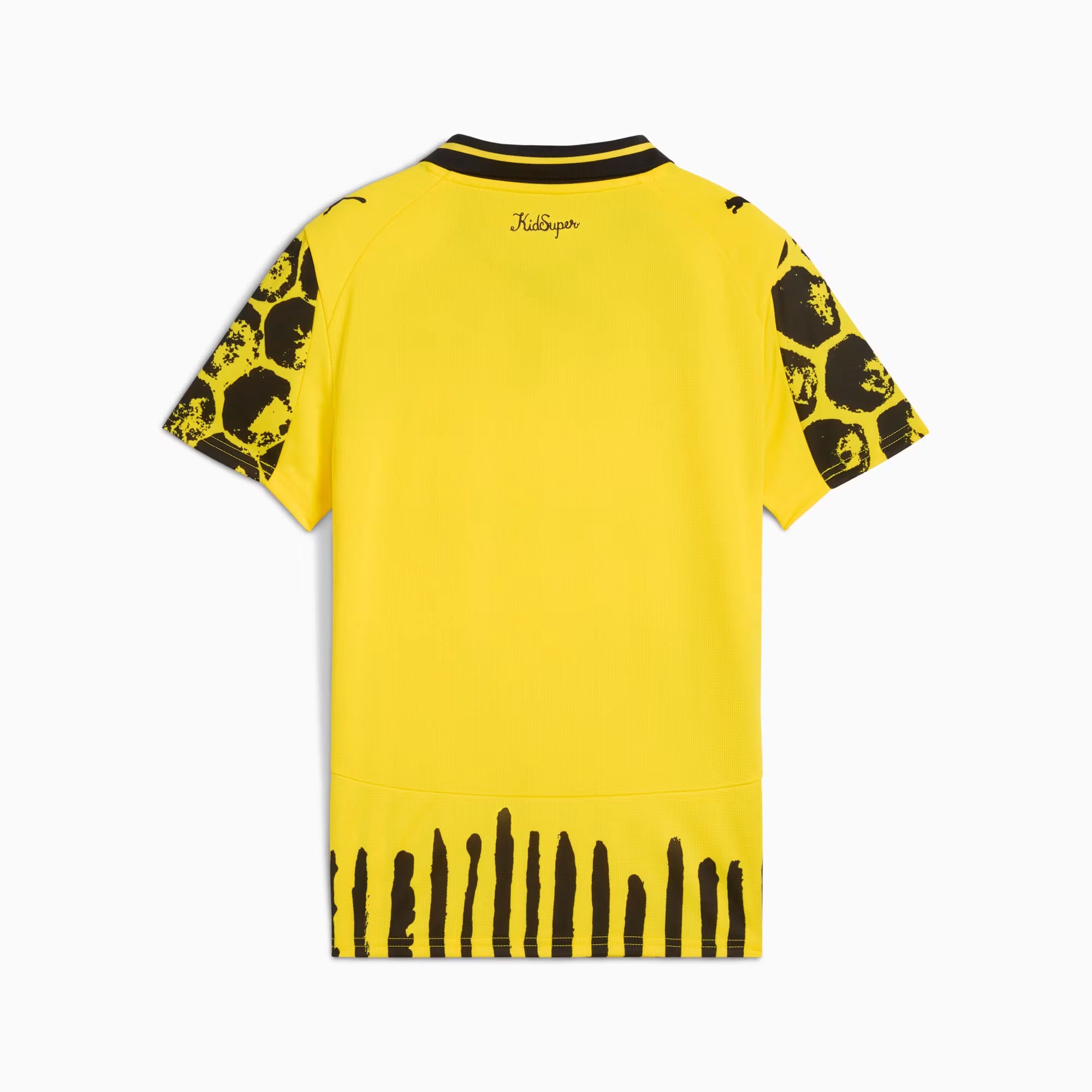 Derived from the geometric design of a honeycomb, this BVB kit is energized with painted hexagonal cells and dynamic lines. Stirring up a buzz from the Ruhr to Rodeo Drive, the jersey is part of the PUMA x KIDSUPER collection, where hand-drawn graphics, watercolor palettes, and designs rooted in club culture come together for a fresh take on the Beautiful Game – redrawn, repainted, and ready to play.