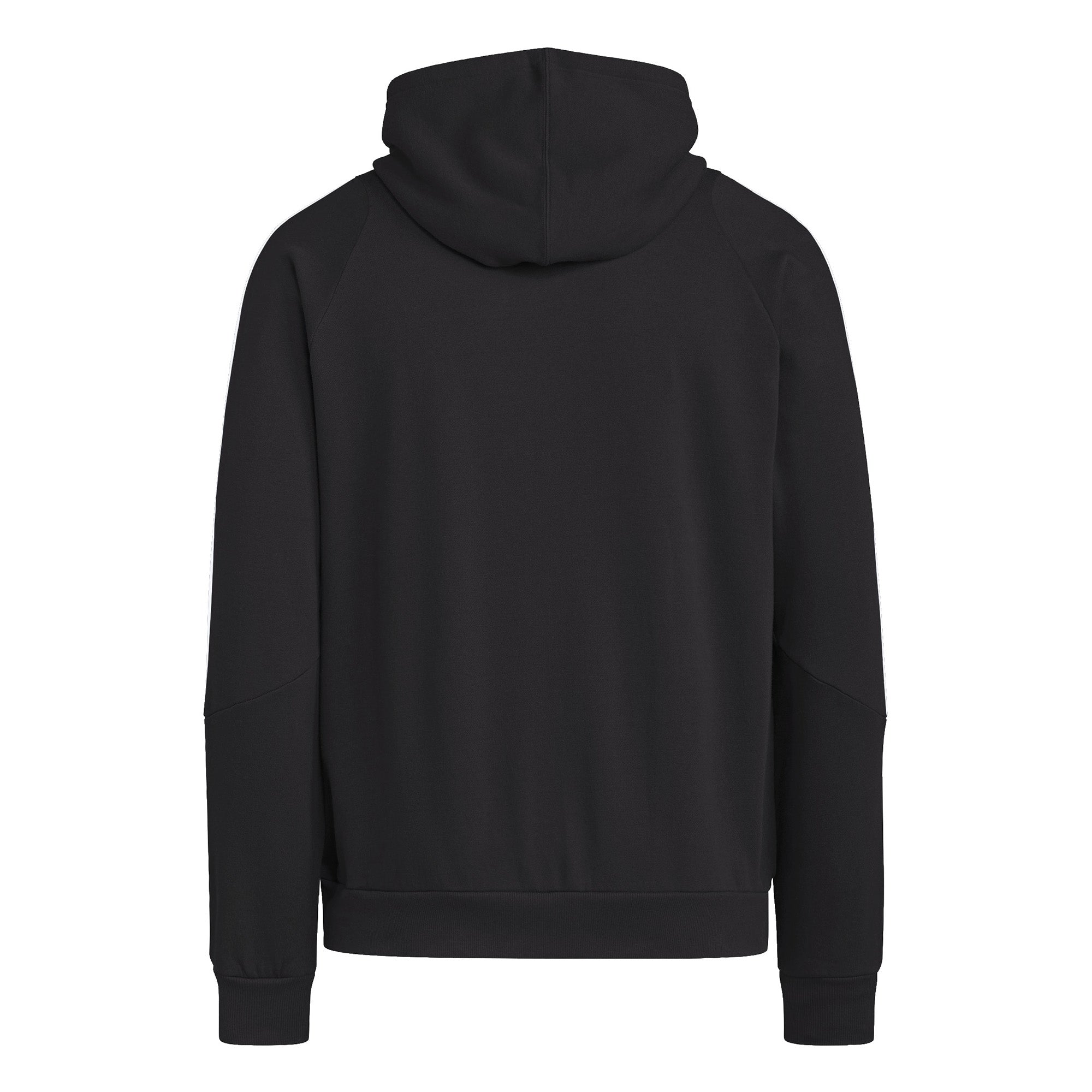 Stay comfortable on the sidelines. Thanks to its loose fit and fleece build, this adidas sweat hoodie is ideal for staying cosy on the way to and from the football pitch. Just pull up that drawcord-adjustable hood when you need to focus before matches and training sessions.
