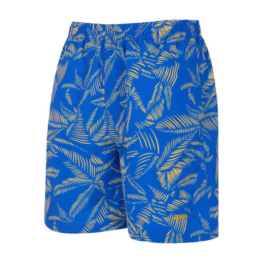 Zoggs innovative eco-friendly watershorts! Featuring a blue base and yellow floral design, these shorts are ideal for swimming in the pool or relaxing at the beach.