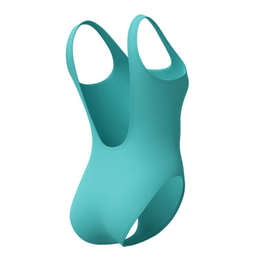 The vibrant turquoise shade is made for beach escapes, and the scoop neck, deep U-back and high-cut leg offer a fashion-forward fit.
