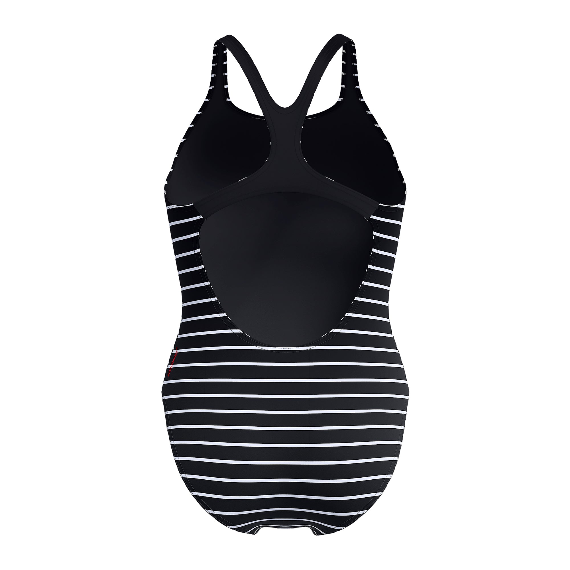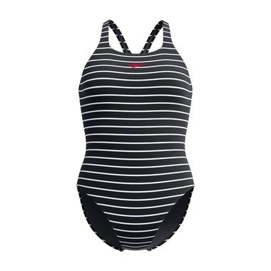 Speedo's Endurance+ Medalist swimsuit is a Speedo classic – the OG of the pool. This printed version includes their take on the classic Breton stripe. Stay agile and comfortable in the medalist design, which aids shoulder movement and flexibility during training. Feel ready to go again in the quick-drying Endurance+ fabric, designed for durability with high chlorine resistance.