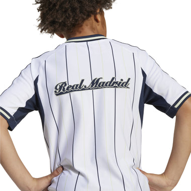 Merging the all-American look of a baseball jersey with a traditional football-inspired design, it teams pinstripes, a button closure and a Los Blancos badge. Whether you're cheering from the stands or kicking back on the couch, this statement-making top delivers sporty style for any occasion.
