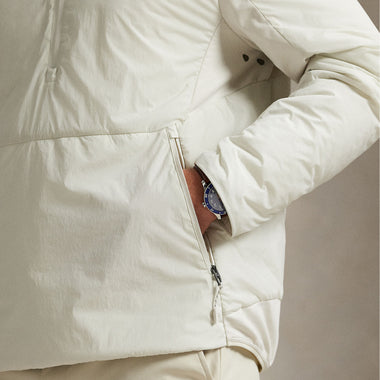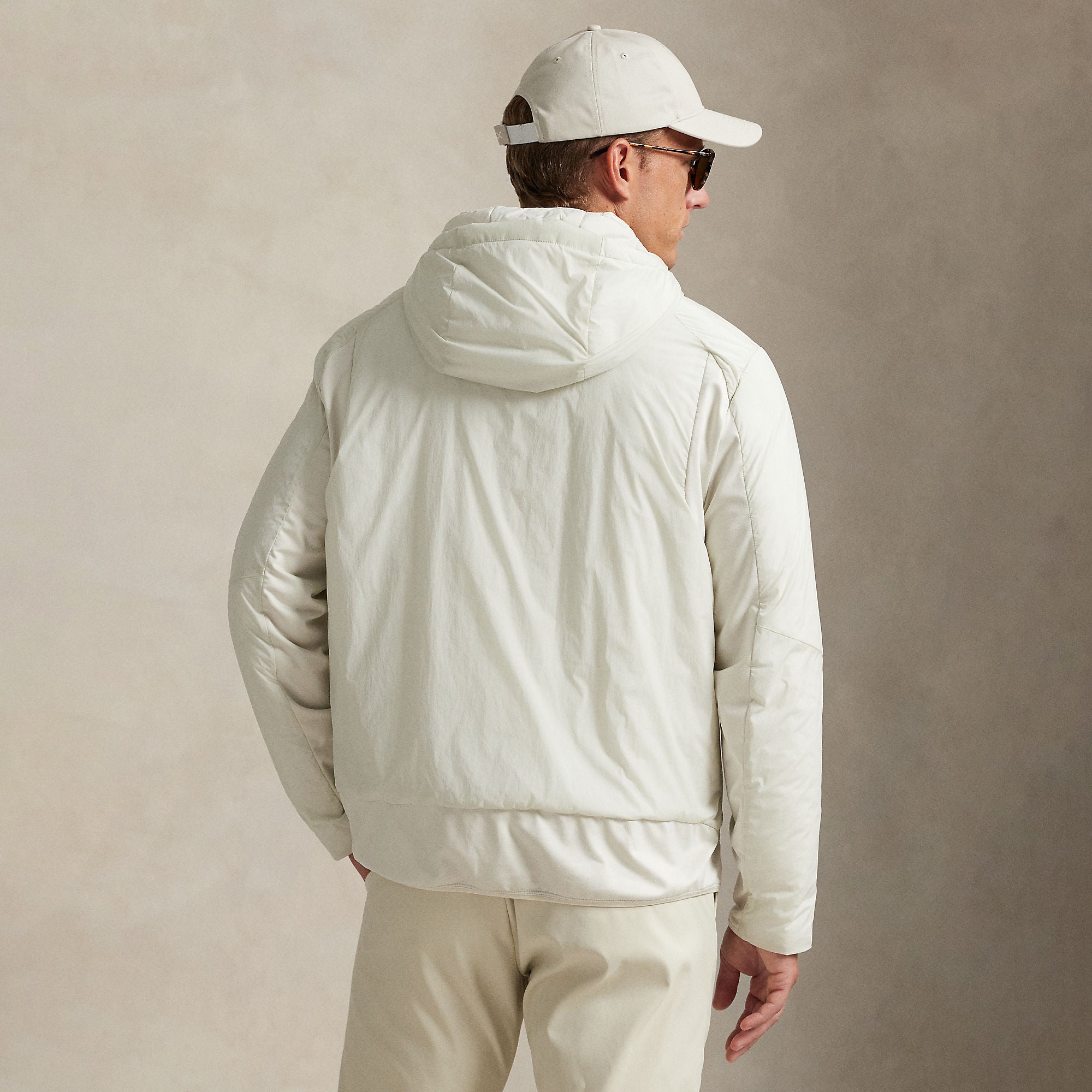 This lightweight jacket is crafted from water-repellent fabric and ergonomically panelled with stretch jersey for ease of movement.