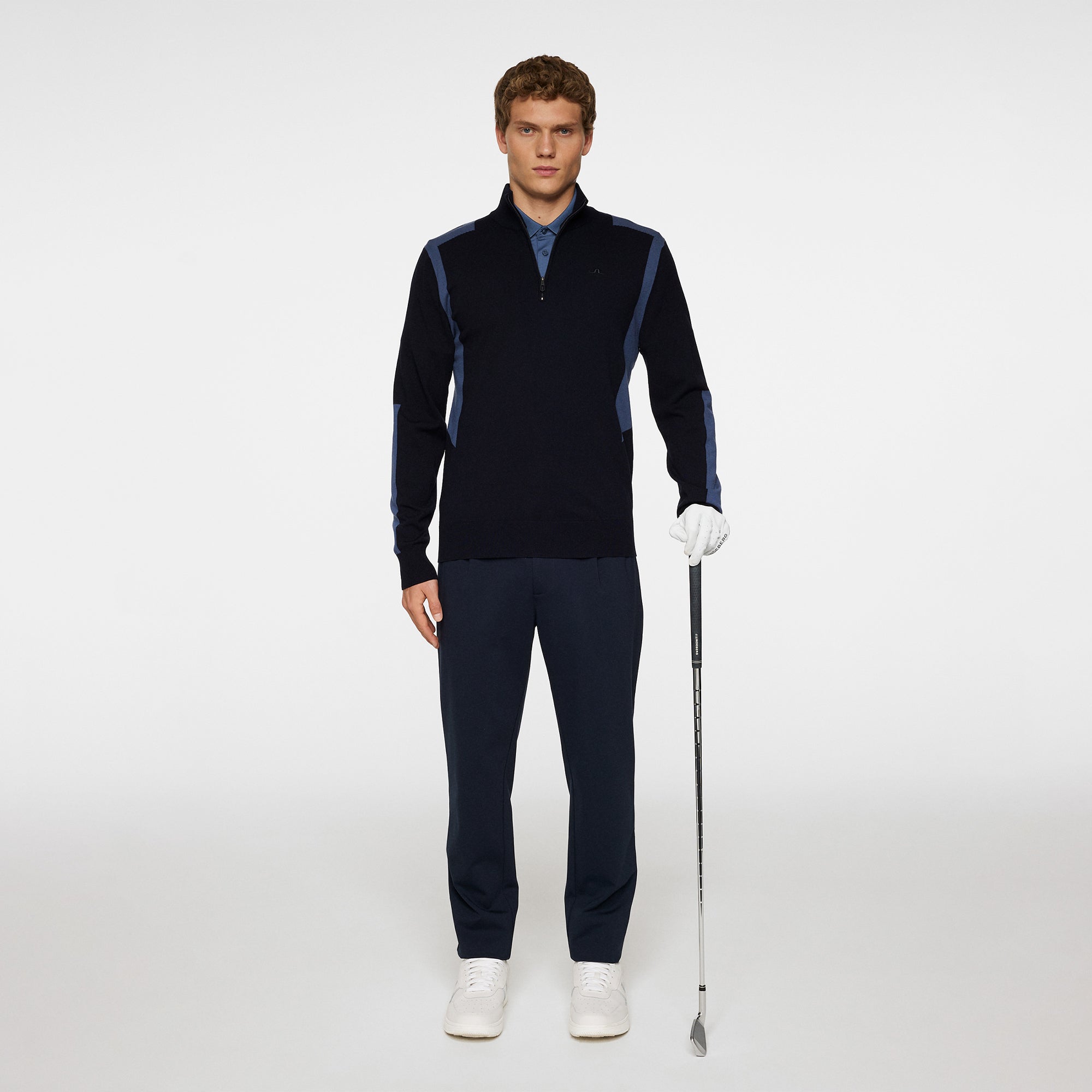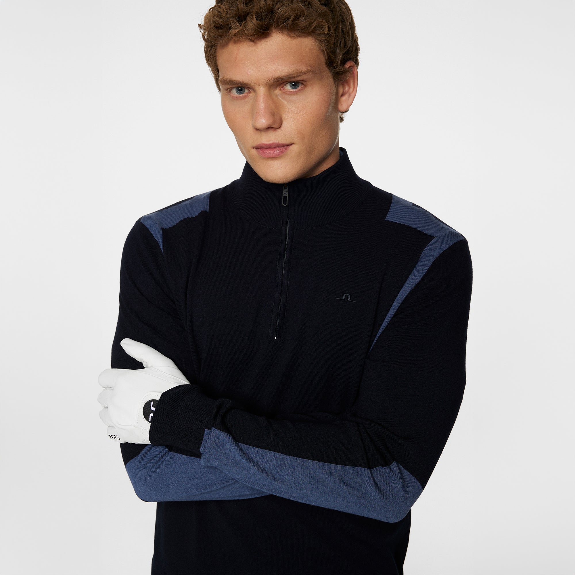 This half zip mock neck style features intarsia knitted contrast panels on the sleeves and offers a soft hand feel. Ideal for layering, the Kendrick Sweater combines functionality with modern design.