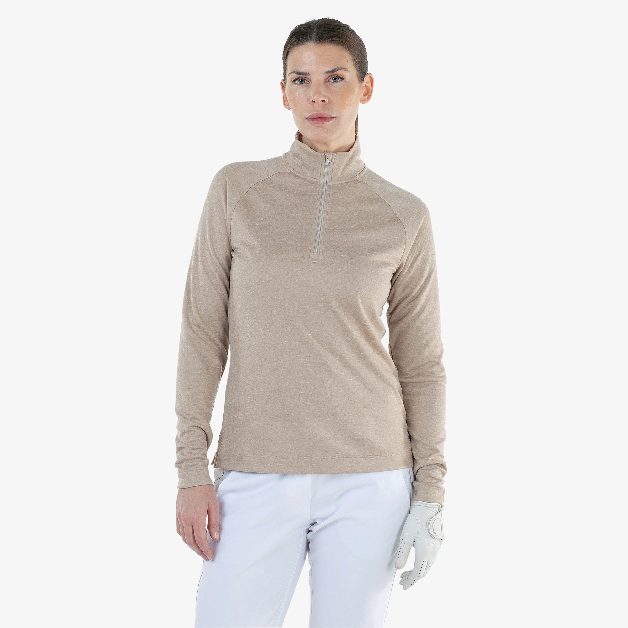 Rated with warming effect #1, this women’s melange quarter zip offers the lightest, softest technologies, designed for maximum breathability and freedom of movement. It’s extremely breathable, lightweight, and quick dry, making it easy to wear in a variety of conditions, and to pack away in your golf bag when not needed.