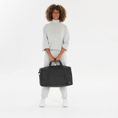 The side zipper pocket ensures quick access to important things. Carry it comfortably with the handles or the removable, adjustable shoulder strap. The PU top protects against moisture, and with 55 litres of volume you have enough space for everything you need.