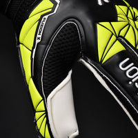• PrecisionGK Fusion X Flat Cut Finger Protect GK Gloves in black and yellow.