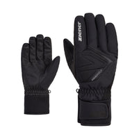 The sporty, trendy ZIENER men's ski gloves GATIS AS® are equipped with the waterproof, windproof ZIENER AQUASHIELD® membrane, which keeps hands warm and dry. Extra warmth is provided by the ZIENER THERMOSHIELD® and warm fleecy lining on the back of the hand, which makes them suitable for wearing even in adverse weather conditions. The non-slip palms offer perfect power transfer to the ski poles. The elasticated outer material allows for excellent freedom of movement. The snug neoprene cuffs with Velcro fasteners ensure a good fit on the wrists.