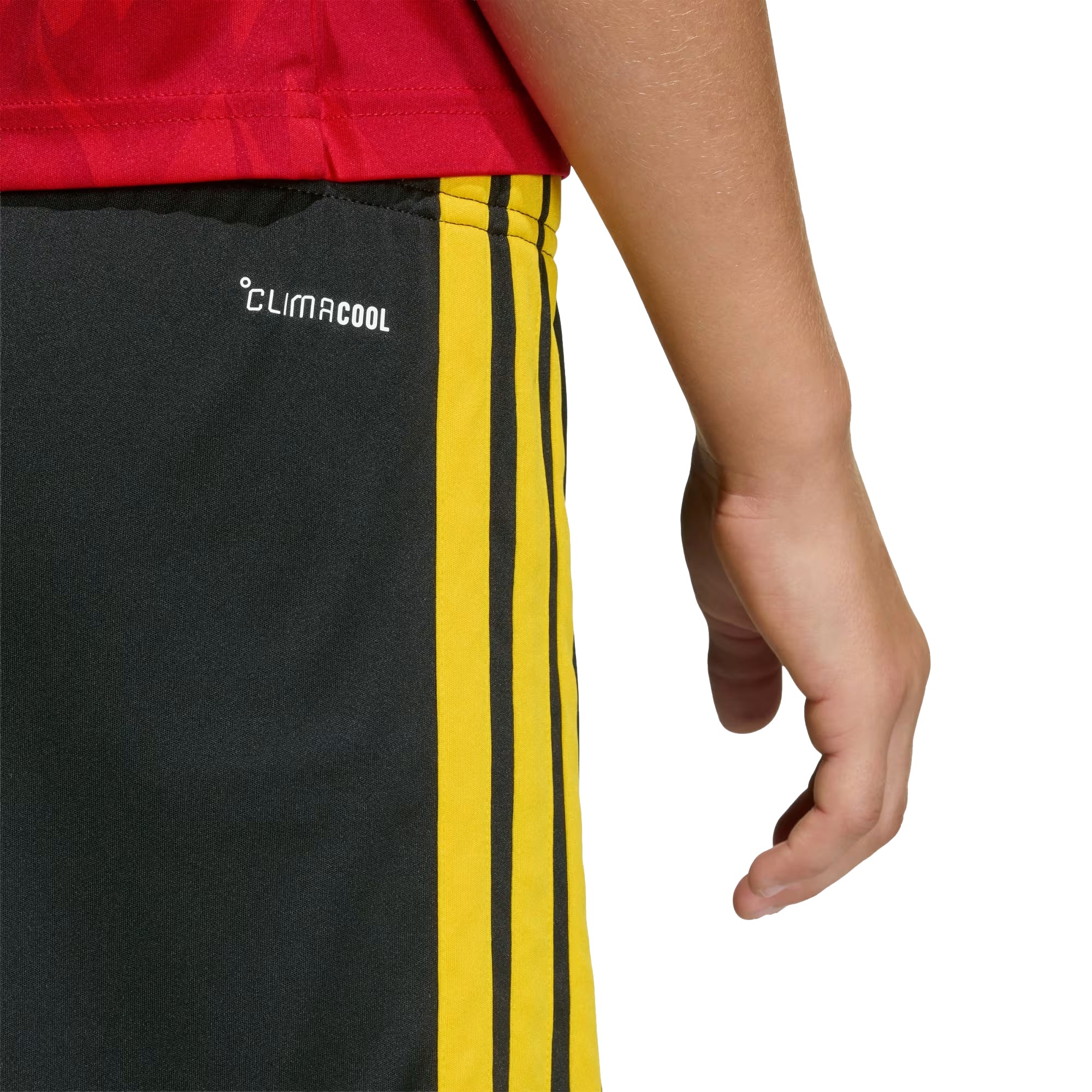 Inspired by the brave spirit of the RBFA, these shorts are a nod to the devils and flames that symbolise Belgium's boldness. Crafted for young football enthusiasts, they feature a regular fit that offers the freedom to move during matches and play time. The fully elasticised waistband and drawcord provide a secure fit, allowing for easy adjustments as they grow.