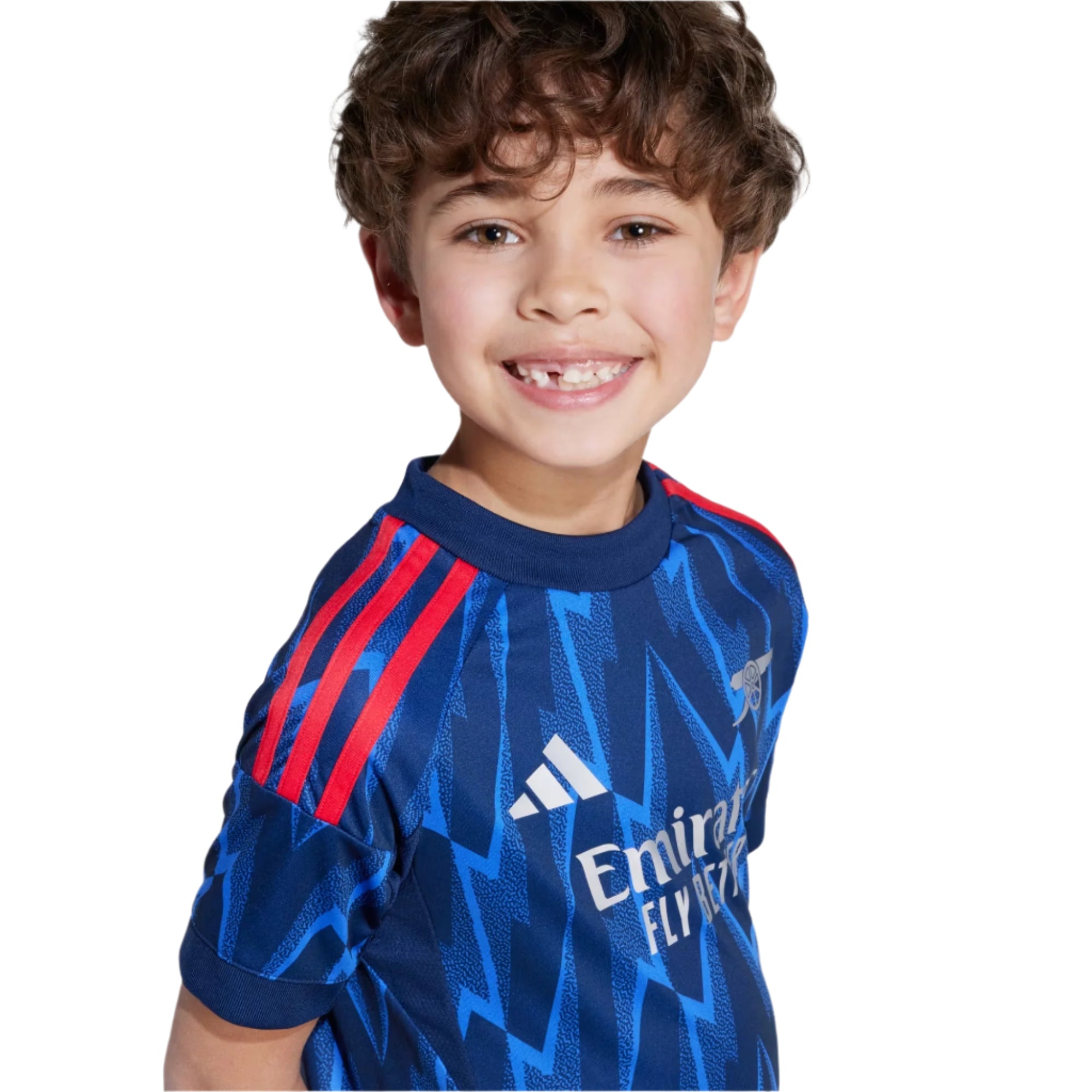 A kids' Arsenal kit pulsing with match day energy.