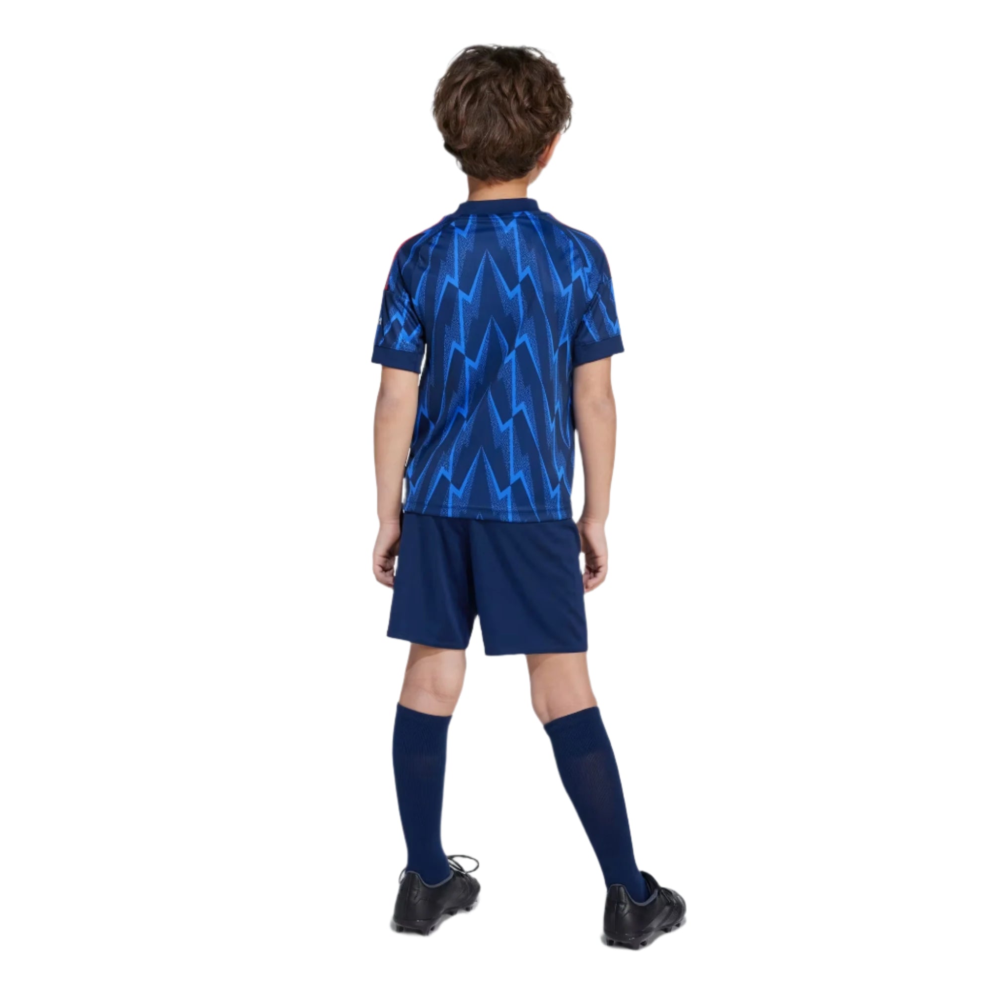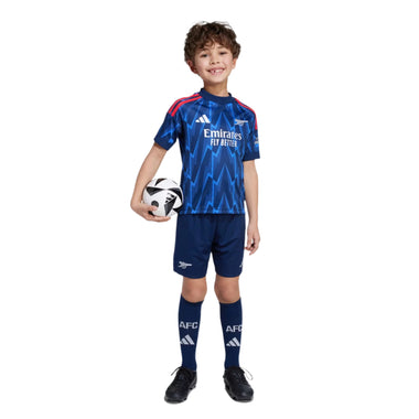This kids' adidas football kit brings the iconic motif back with a bang thanks to its jersey's vibrant all-over print. A smaller version of the kit the players wear, it includes moisture-managing AEROREADY to keep your young Gunner comfortable while they channel the match day energy.