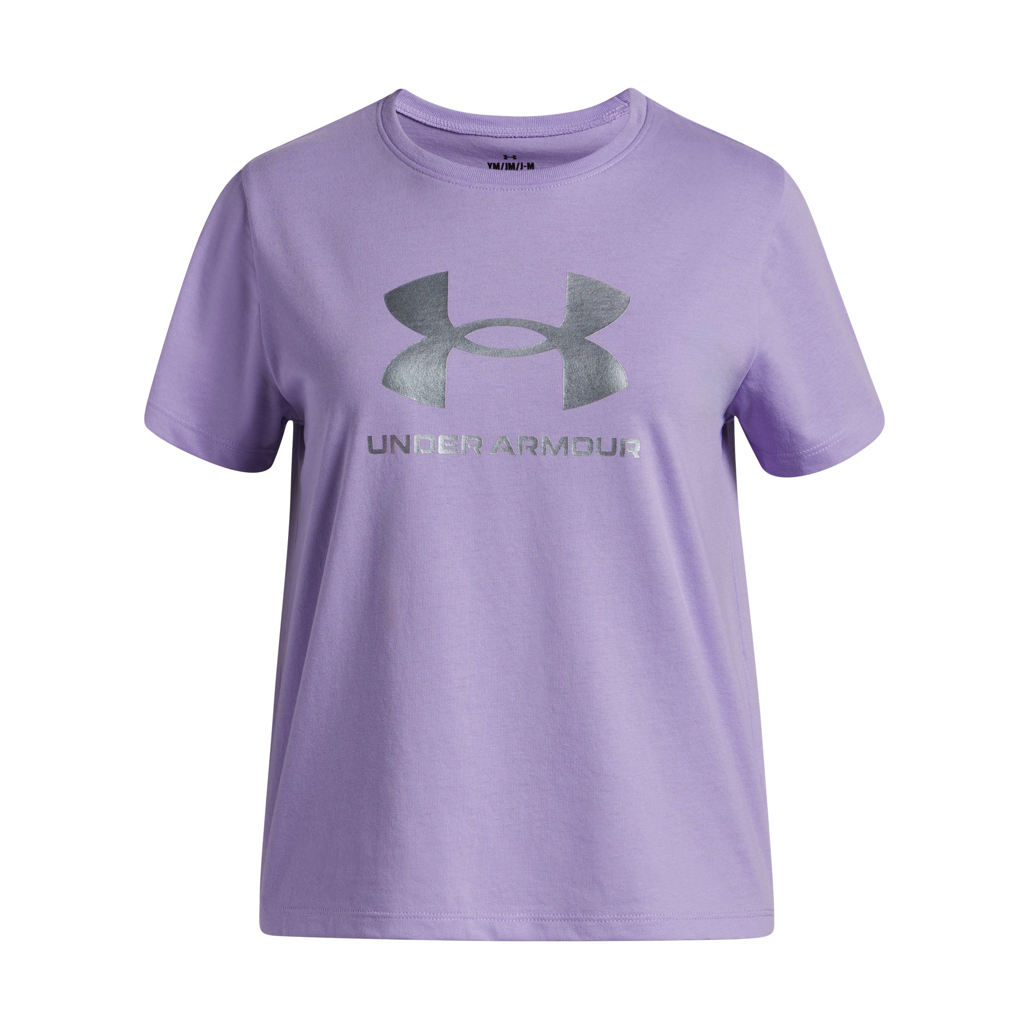 Everyone makes graphic Ts...but Under Armour makes them better. The fabric they use is light, soft, and quick-drying. This shirt features a shimmer logo graphic for added shine.