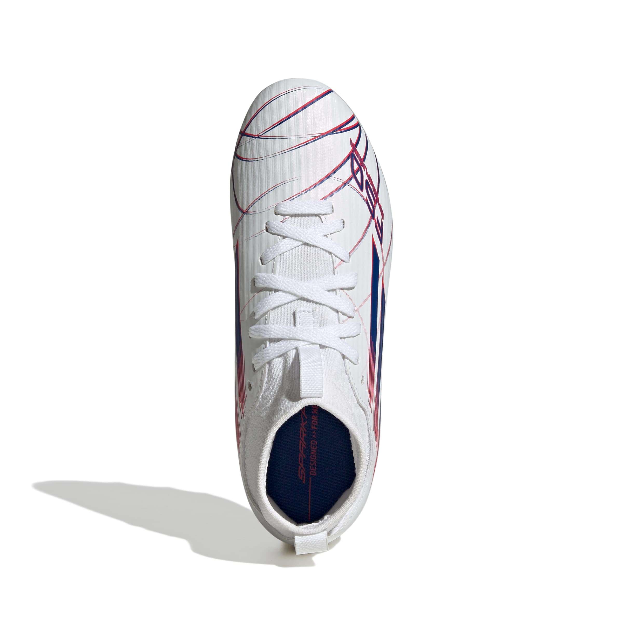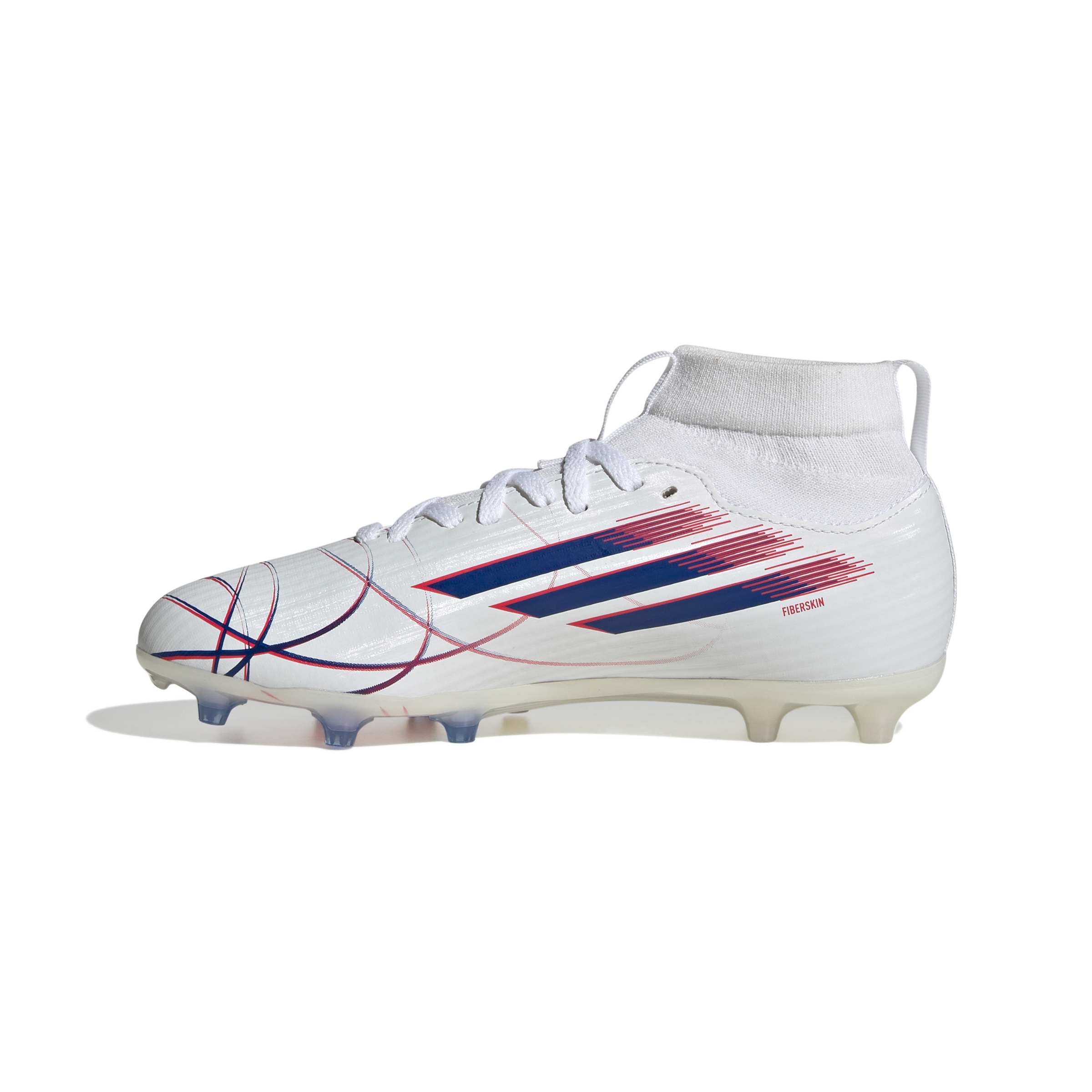 The F50 Sparkfusion League Mid Cut Firm Ground / Artificial Ground Football Boots offer a snug fit with an extended knit collar that moulds to the shape of little feet for responsive comfort during play.