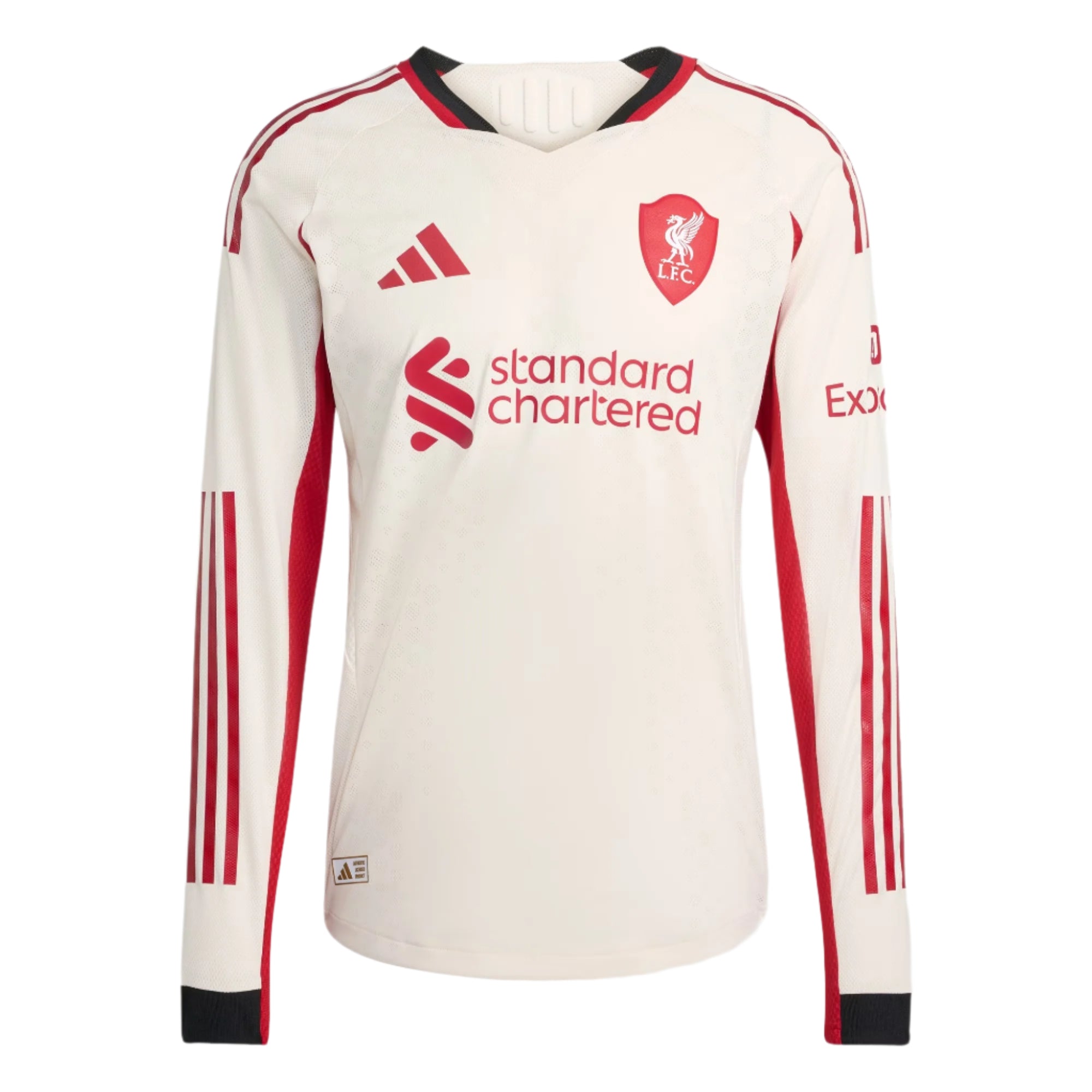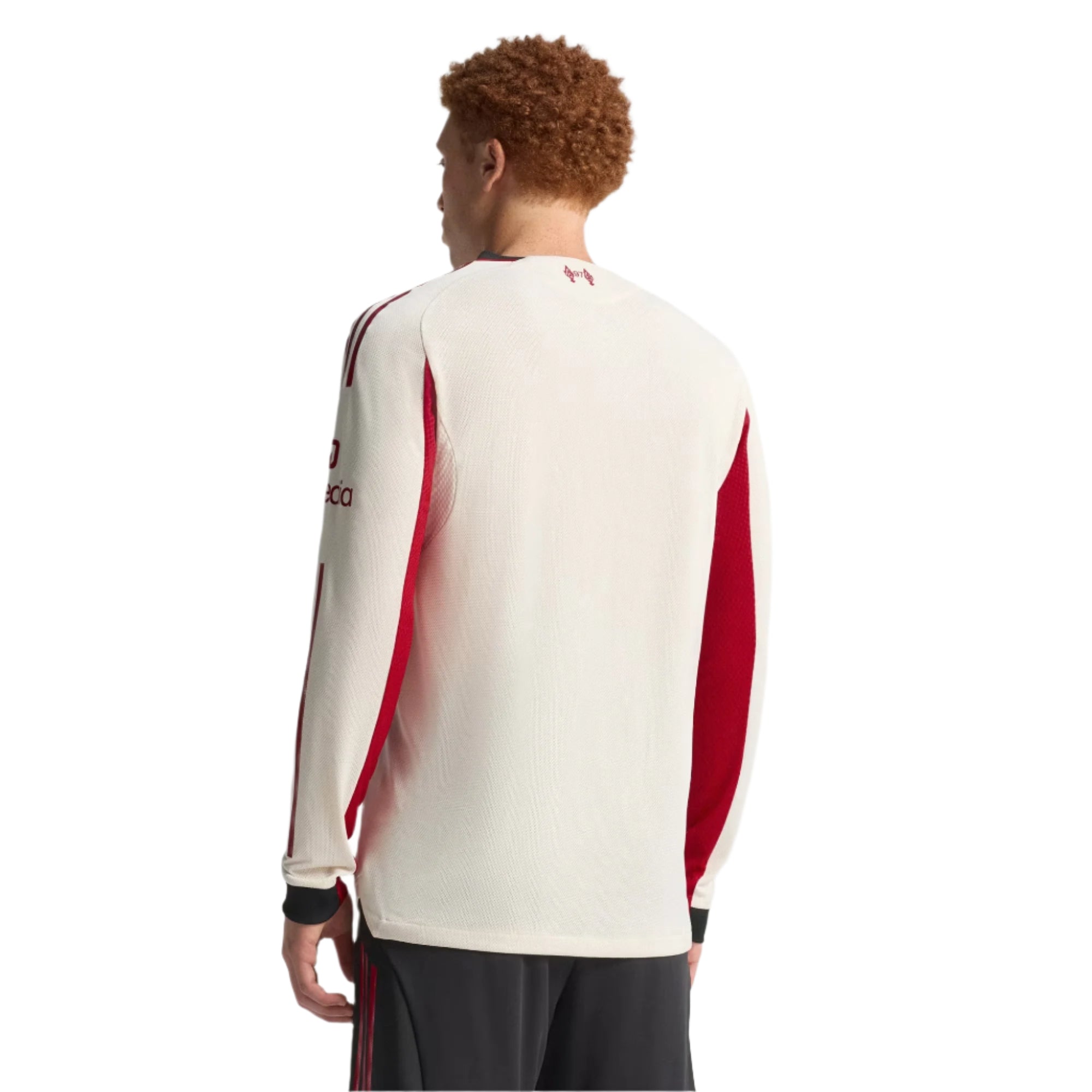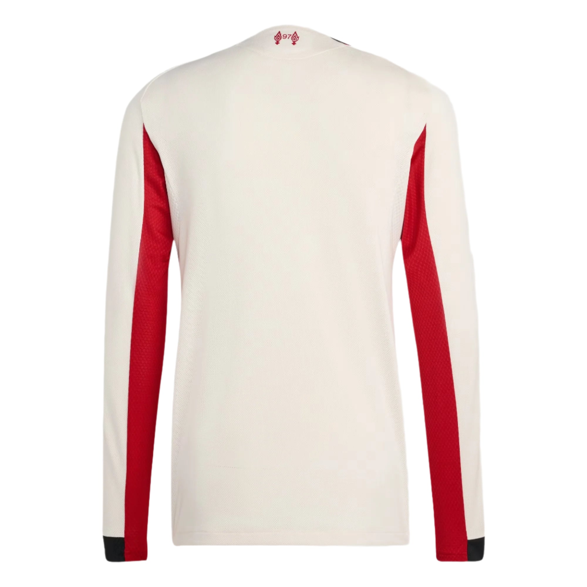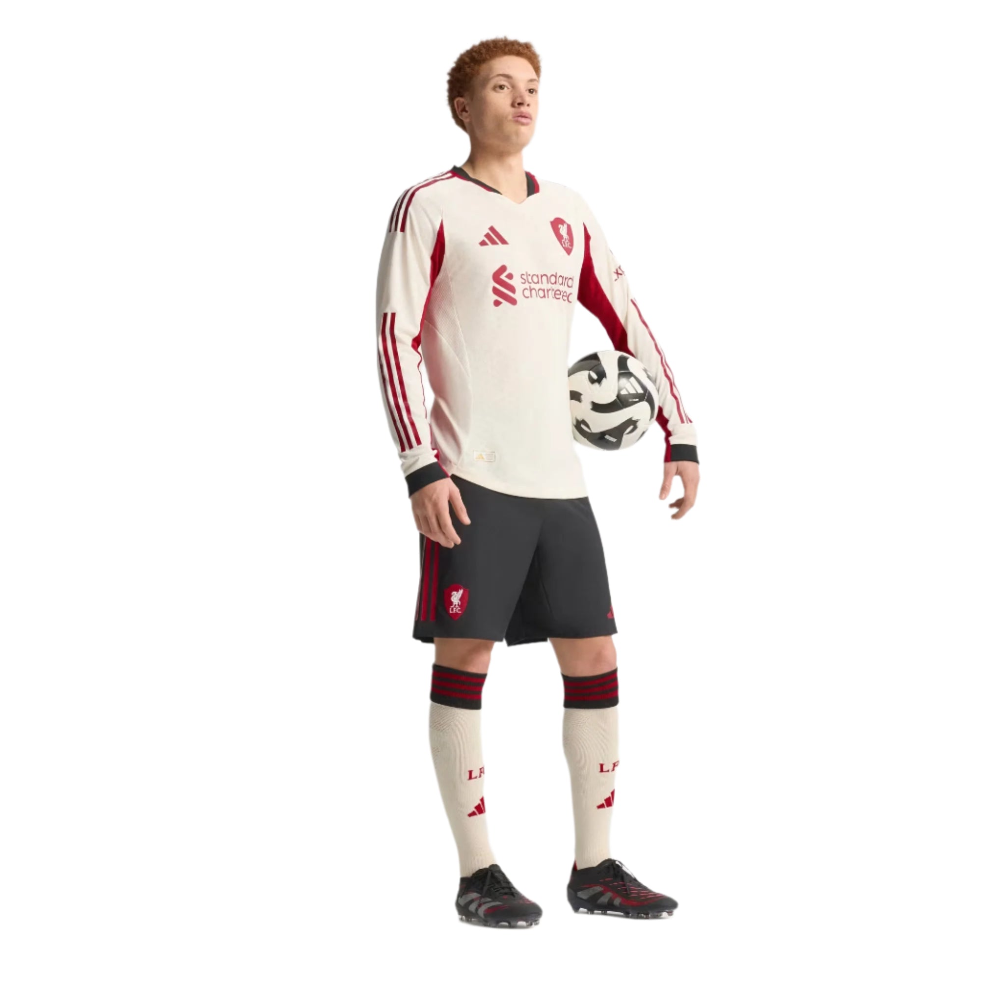 Created to represent Liverpool FC's iconic home ground on away days, this adidas long sleeve authentic jersey displays a specially made crest whose shape was inspired by the arched gable atop the stadium's old Main Stand.