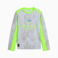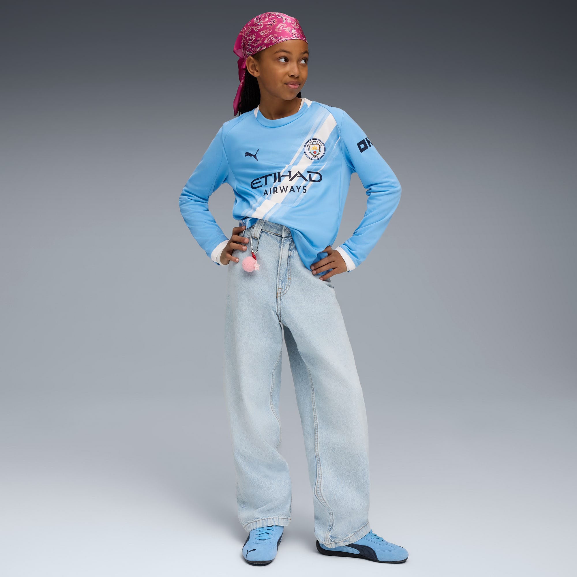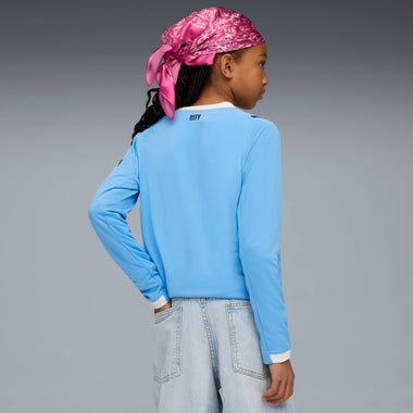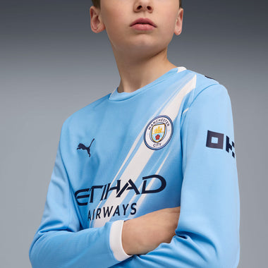 For the first time in club history, the home kit features the sash – the diagonal stripe design made iconic on away days. Paired with the unmistakable Sky Blue and reimagined for the next generation, it’s a connection to our past, a nod to our future, and a reminder that we do things differently here, on and off the pitch.