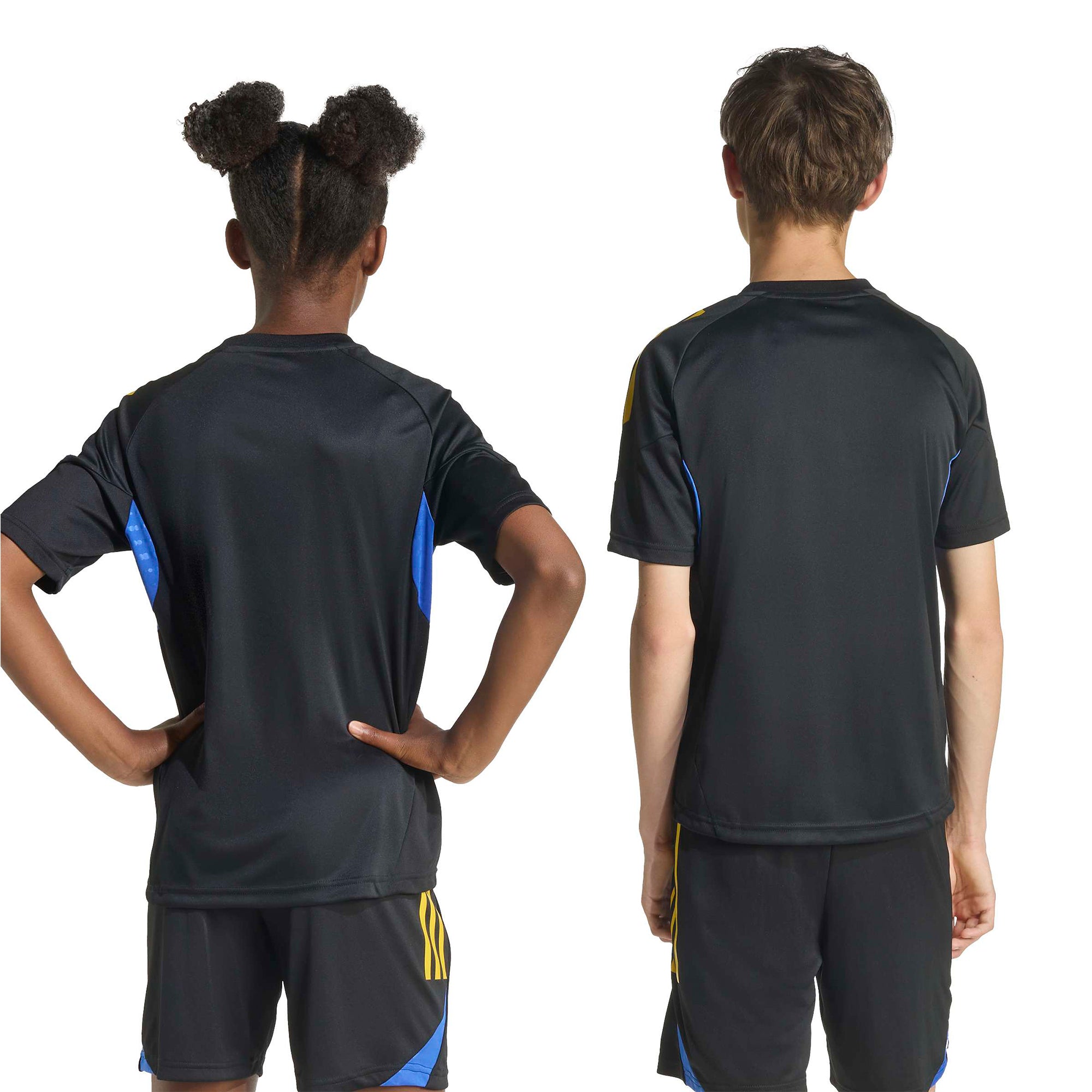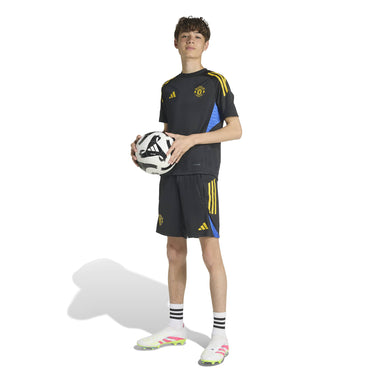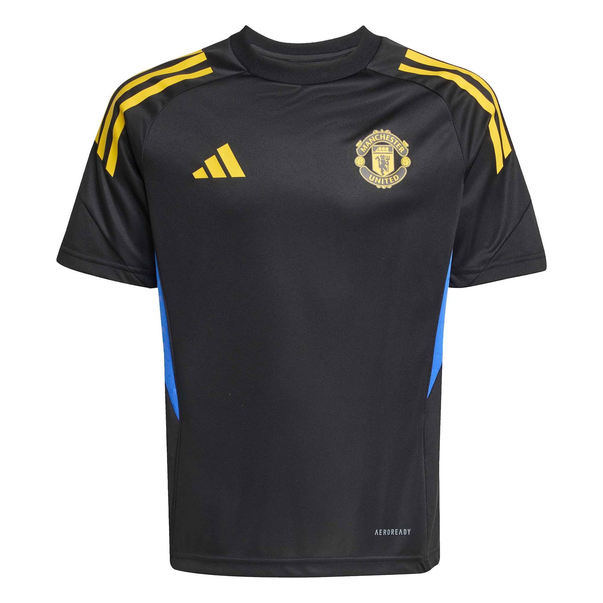 Bearing the black and yellow colours of Manchester United's third shirt, this juniors' adidas football jersey belongs to the training kit the club's players wear before big matches.