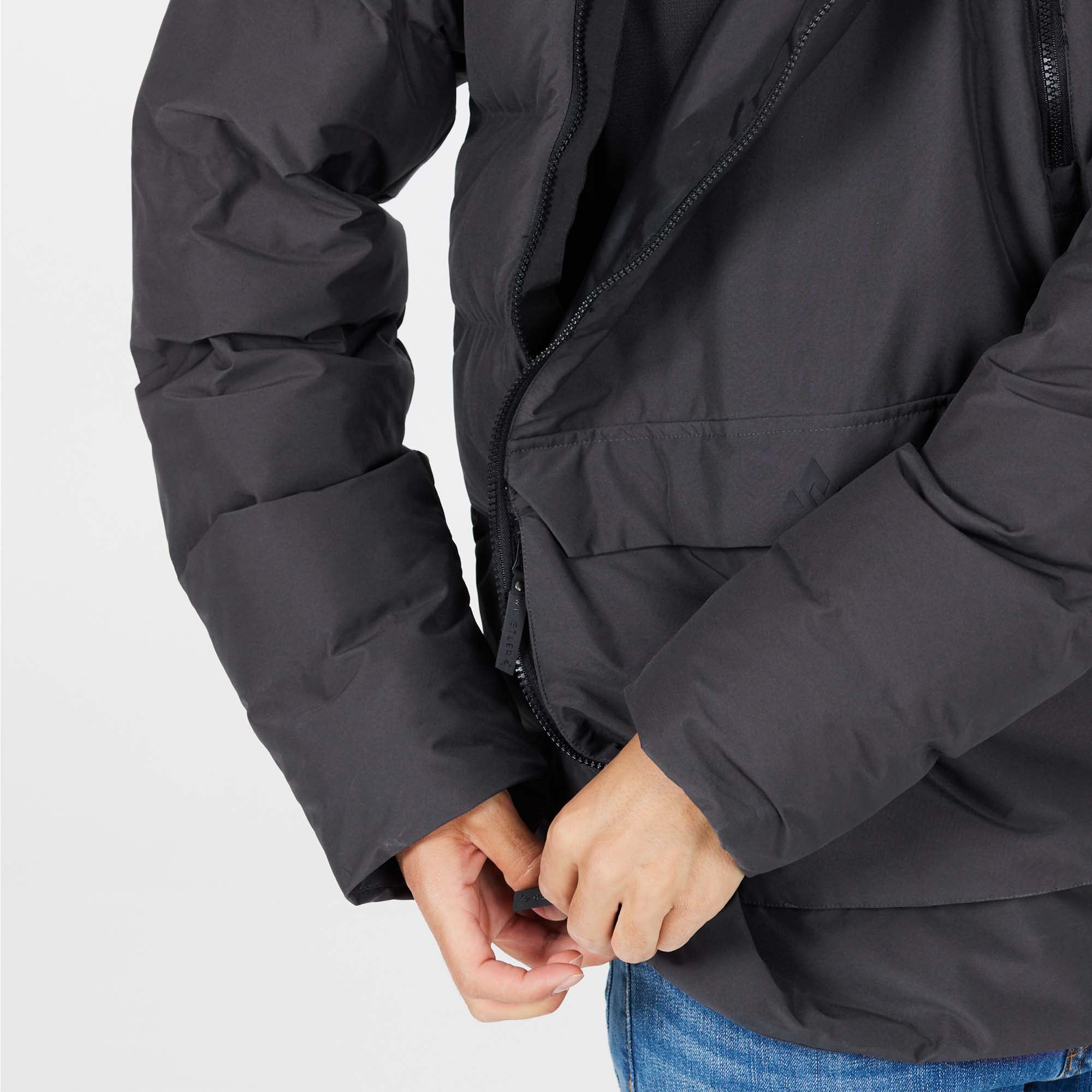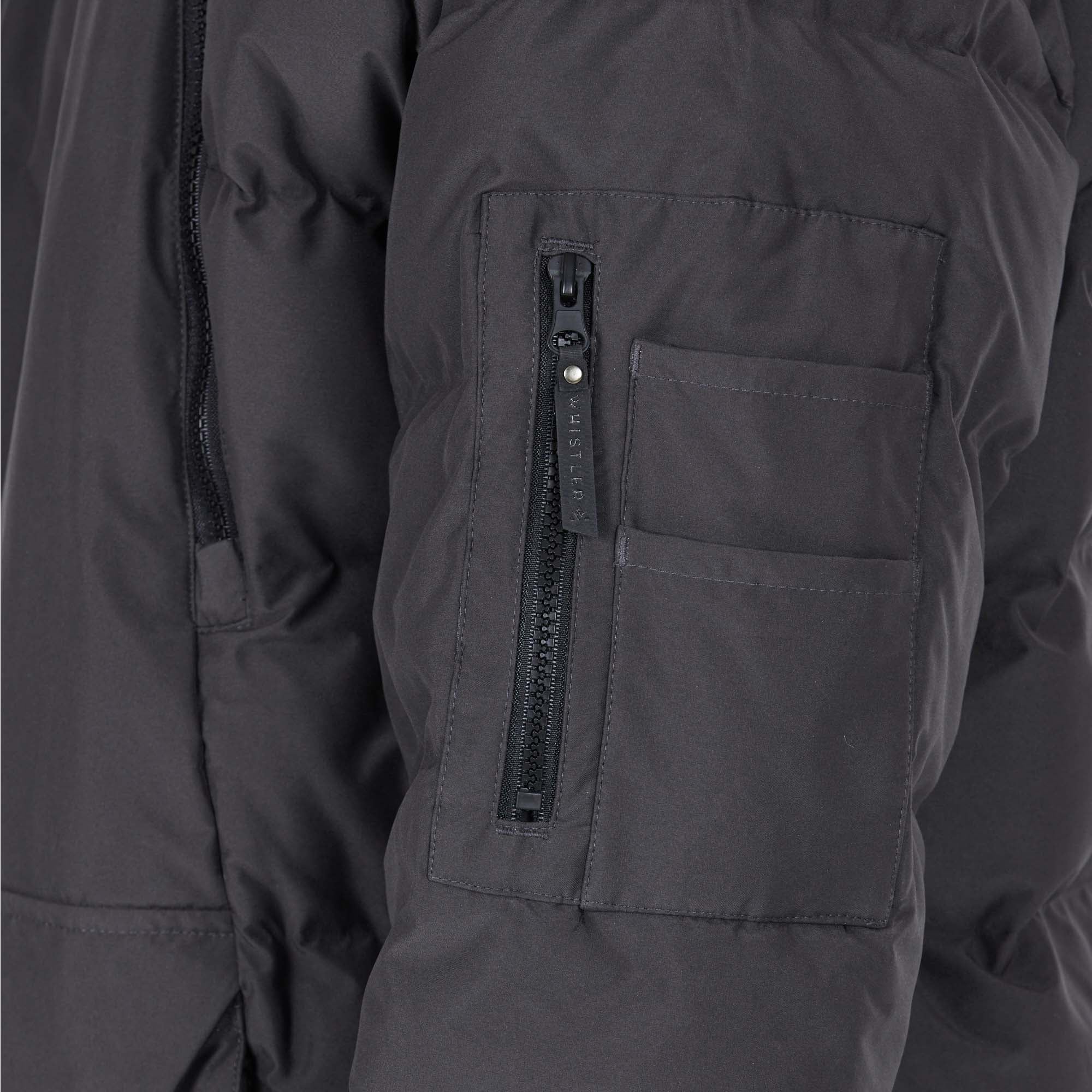 This Whistler Acid Puffer Jacket offers a regular fit designed for comfort and style. It features a hood with an adjustable drawstring and two front zip closures for added warmth.