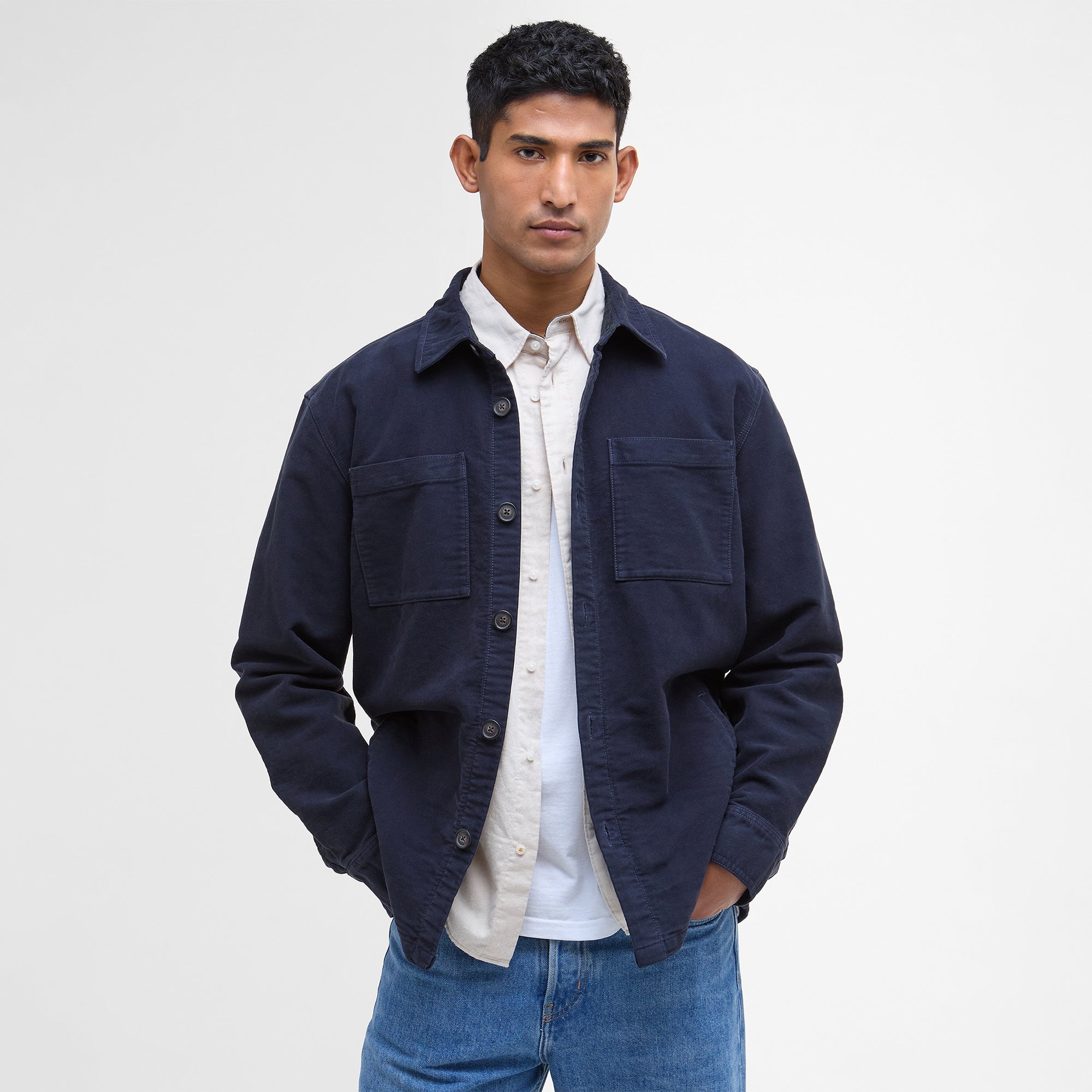 A smart-casual offering crafted from breathable brushed cotton fabric, the Barbour Moleskin Overshirt is imagined with a minimal profile for a modern look.