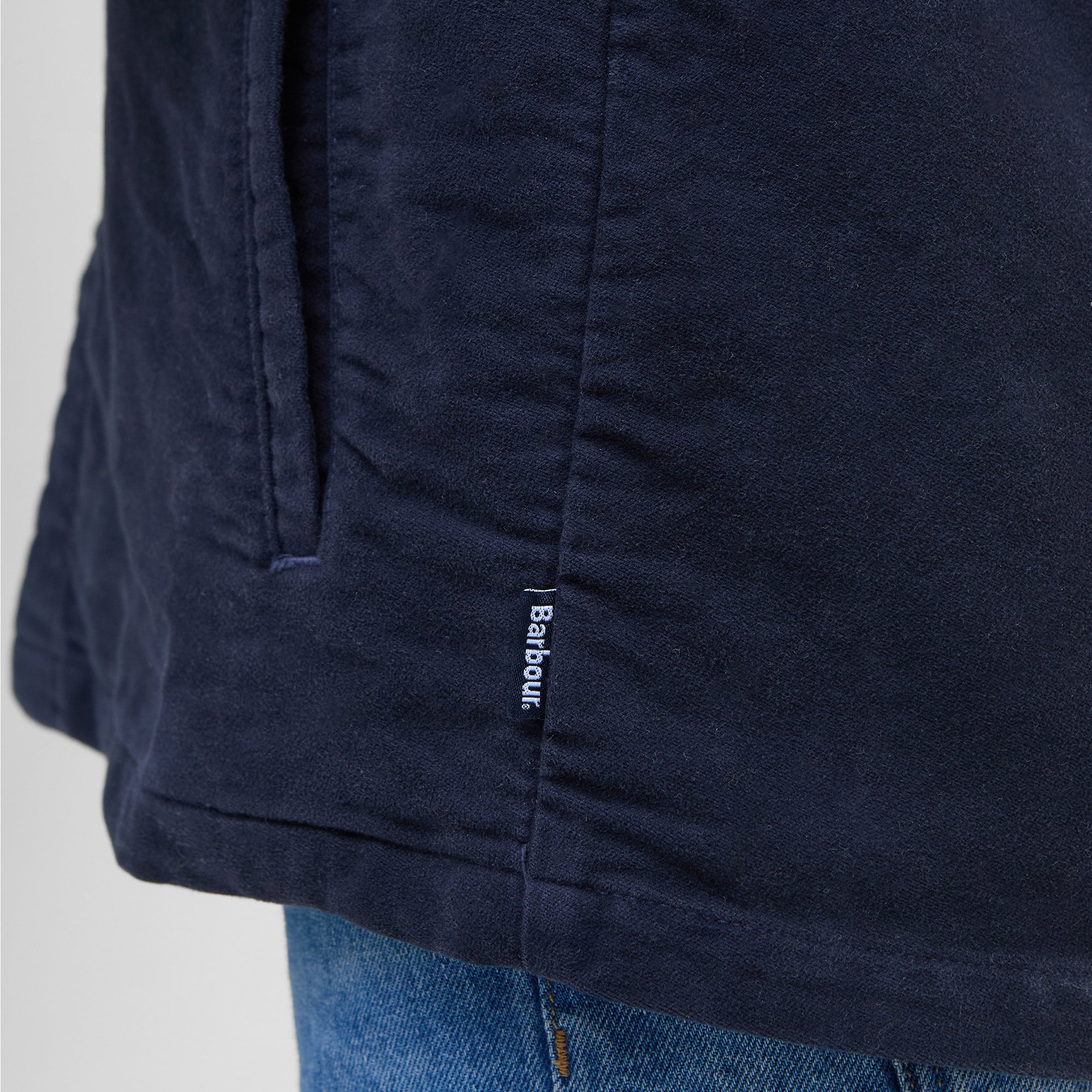 Barbour branded flag label to wearer's left side seam.