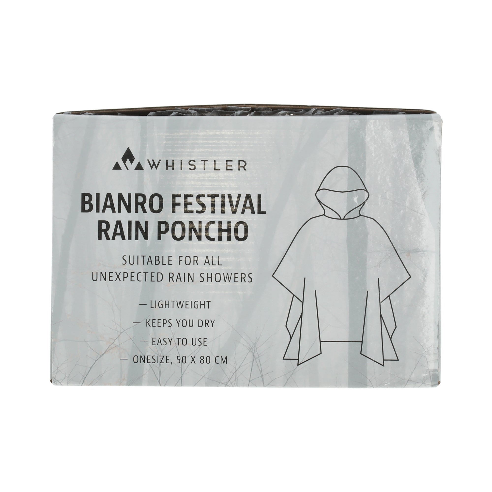 Stay dry and comfortable with Whistler’s Bianro Festival Rain Poncho, crafted from water-resistant PE material that also allows breathability.